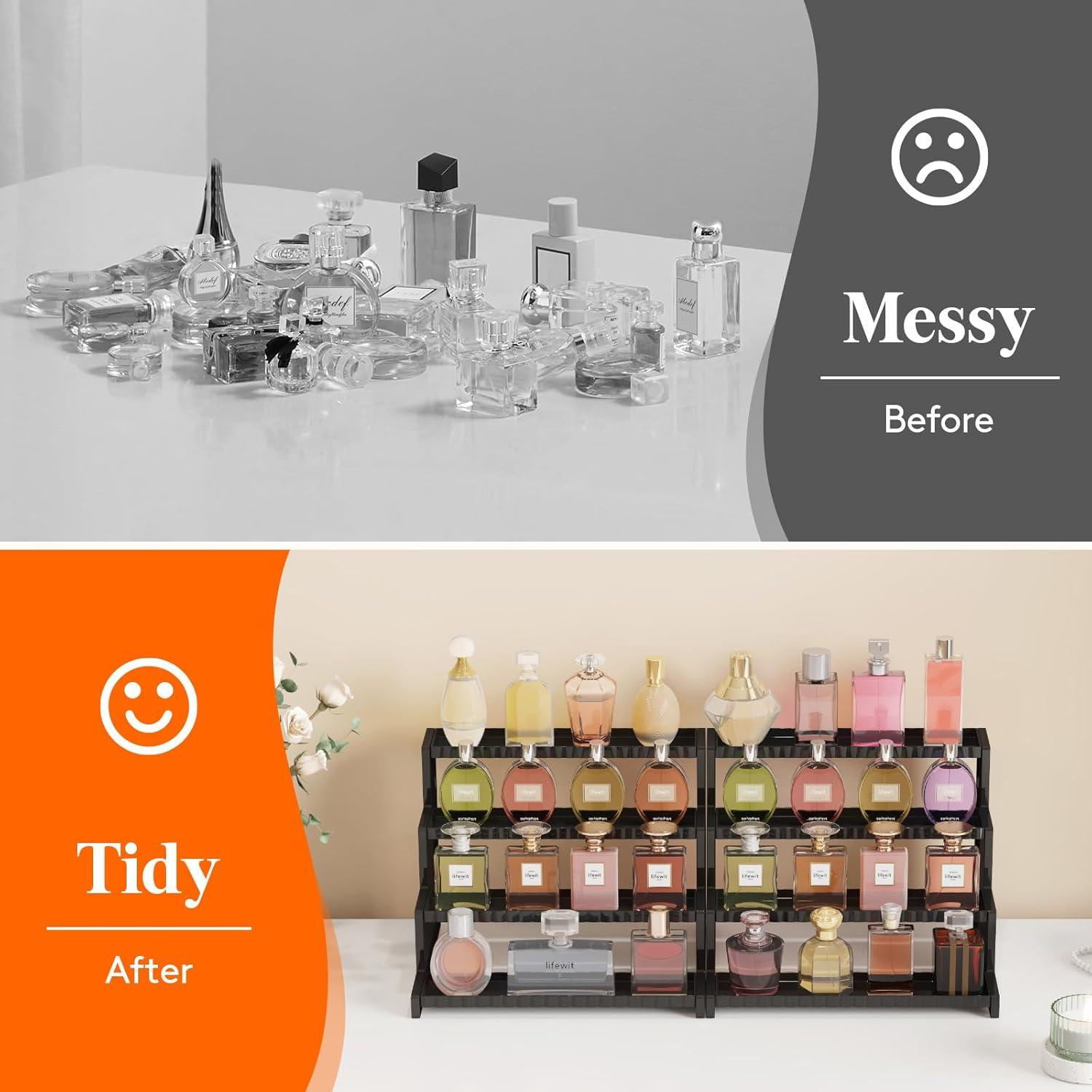 Versatile Storage: This perfume display can accommodate a variety of items such as cosmetics, skincare products, sunglasses, nail polish, and even collectibles; It adapts to your diverse storage needs, making it a versatile addition to your vanity