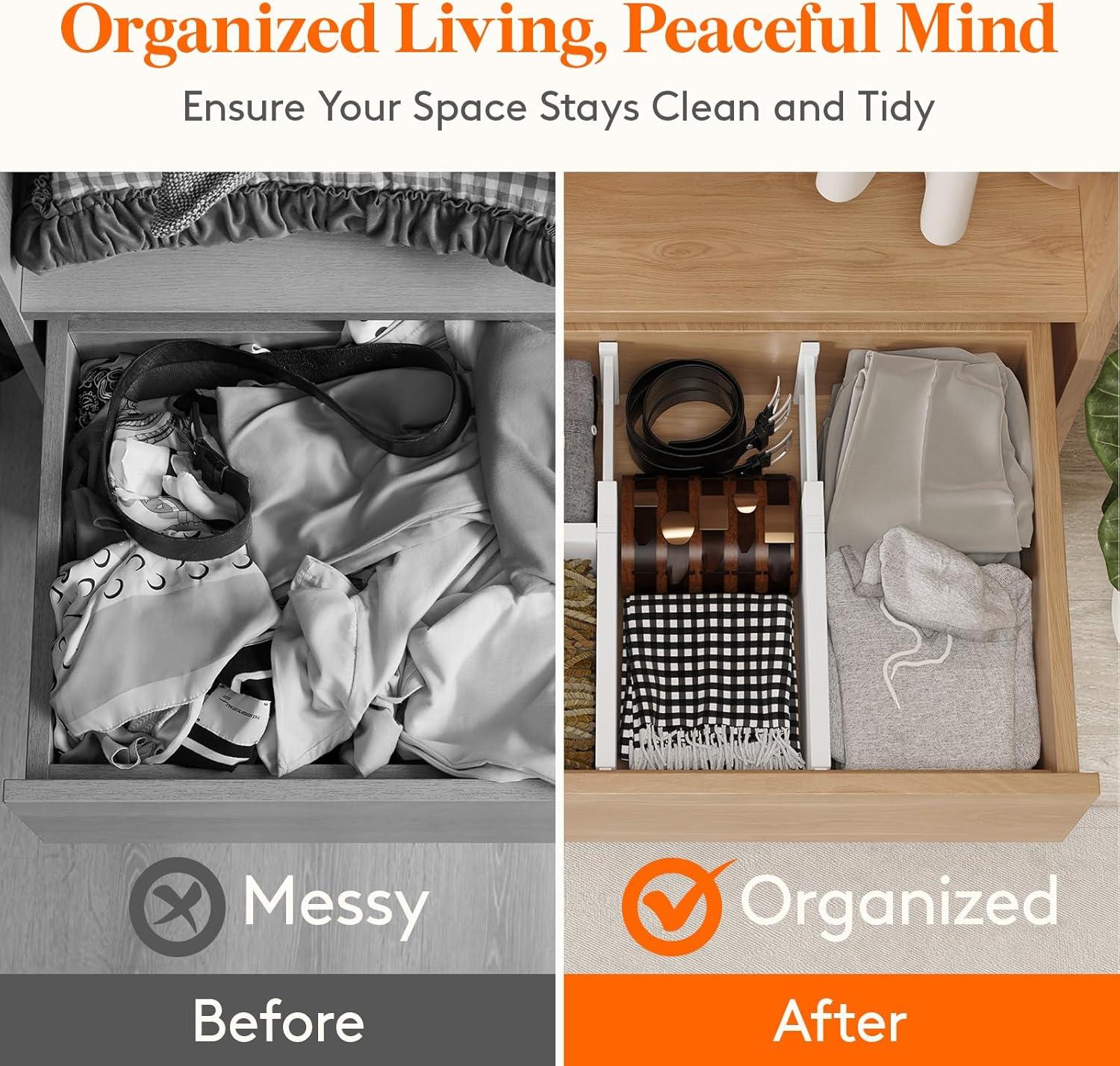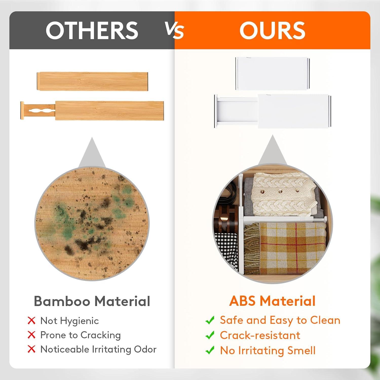 Advanced Design: Our dresser organizer is made from stable ABS material and has high-quality EVA foam sponges at the ends to prevent scratches and damage to drawer walls, leaving no trace or residue. Additionally, our divider is patented (Patent No: US12133593B2) for a unique experience.