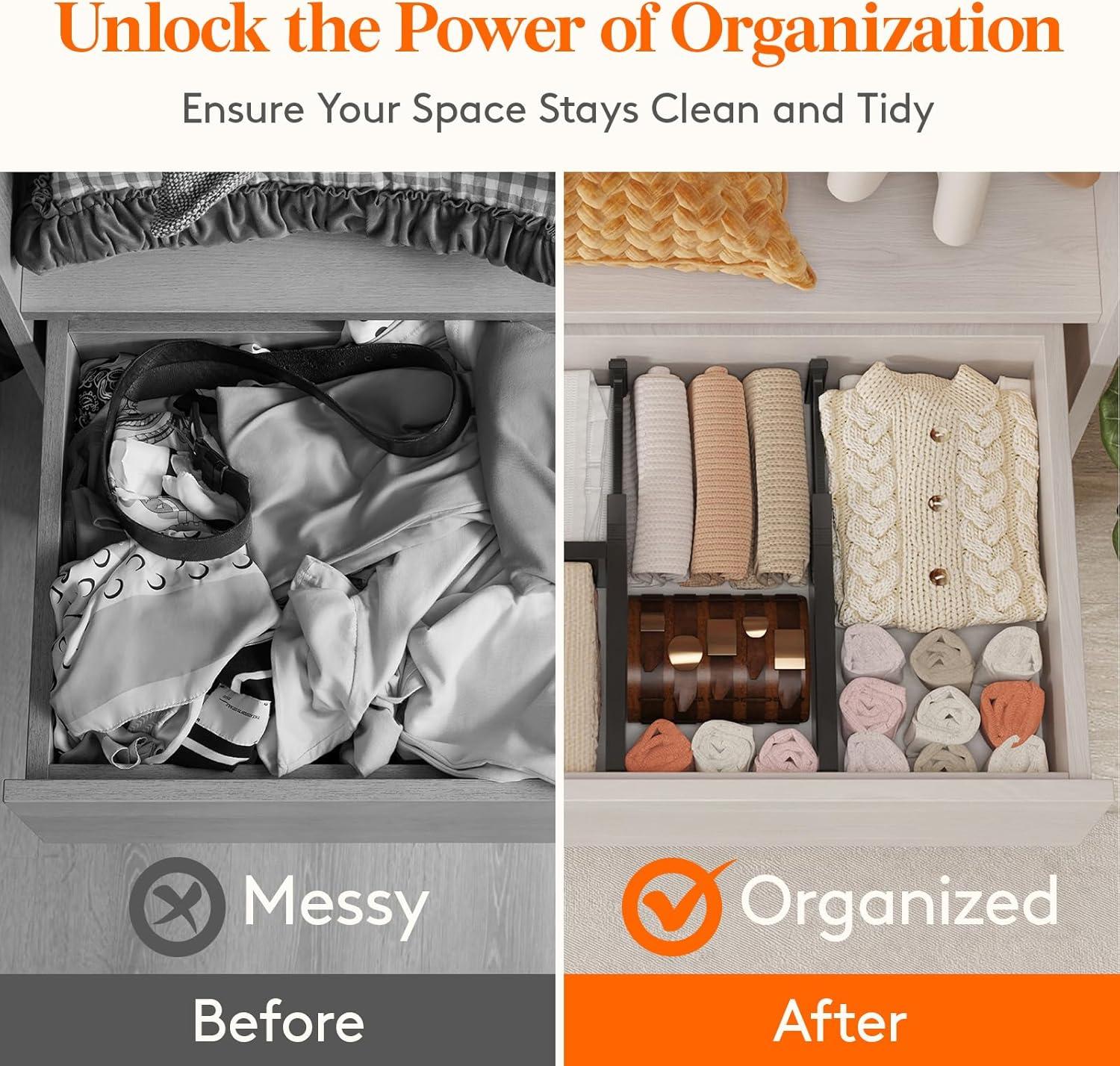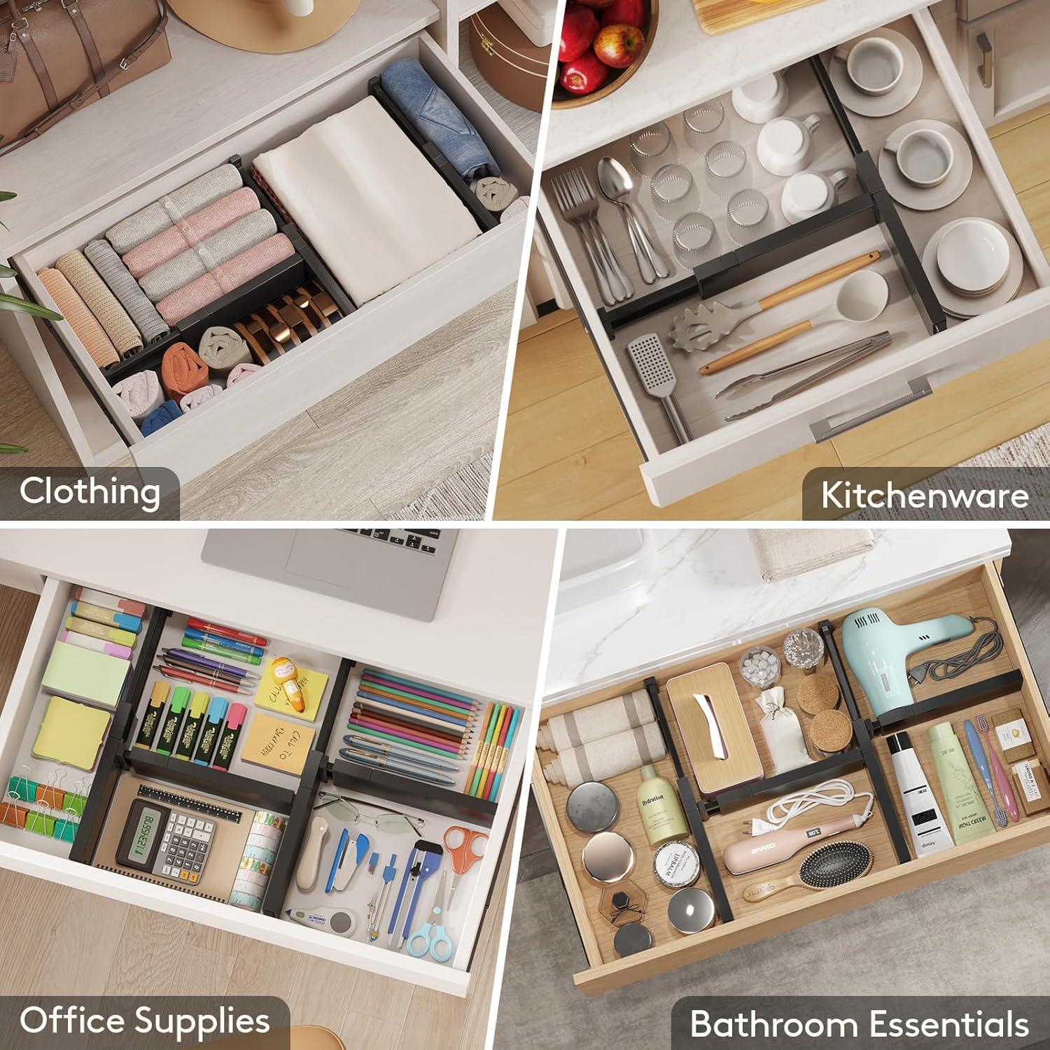 Versatile: These drawer organizers can be installed in any drawer of your house or office, and specifically designed to organize clothing, kitchen utensils, office supplies, cosmetics, bathroom essentials, and more. Ensuring your belongings stay neatly organized and easily accessible