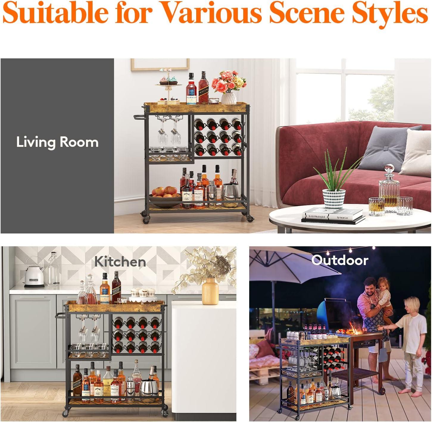 Versatile Serving Cart: This home bar & serving cart is suitable for various scenes: as a liquor cart besides the dining table; as a storage station in the kitchen; as a mobile side table in the living room; as a beverage cart during outdoor BBQ. The mix of elegant rustic brown and black gives this cart a unique industrial look that’ll receive compliments from your guests.