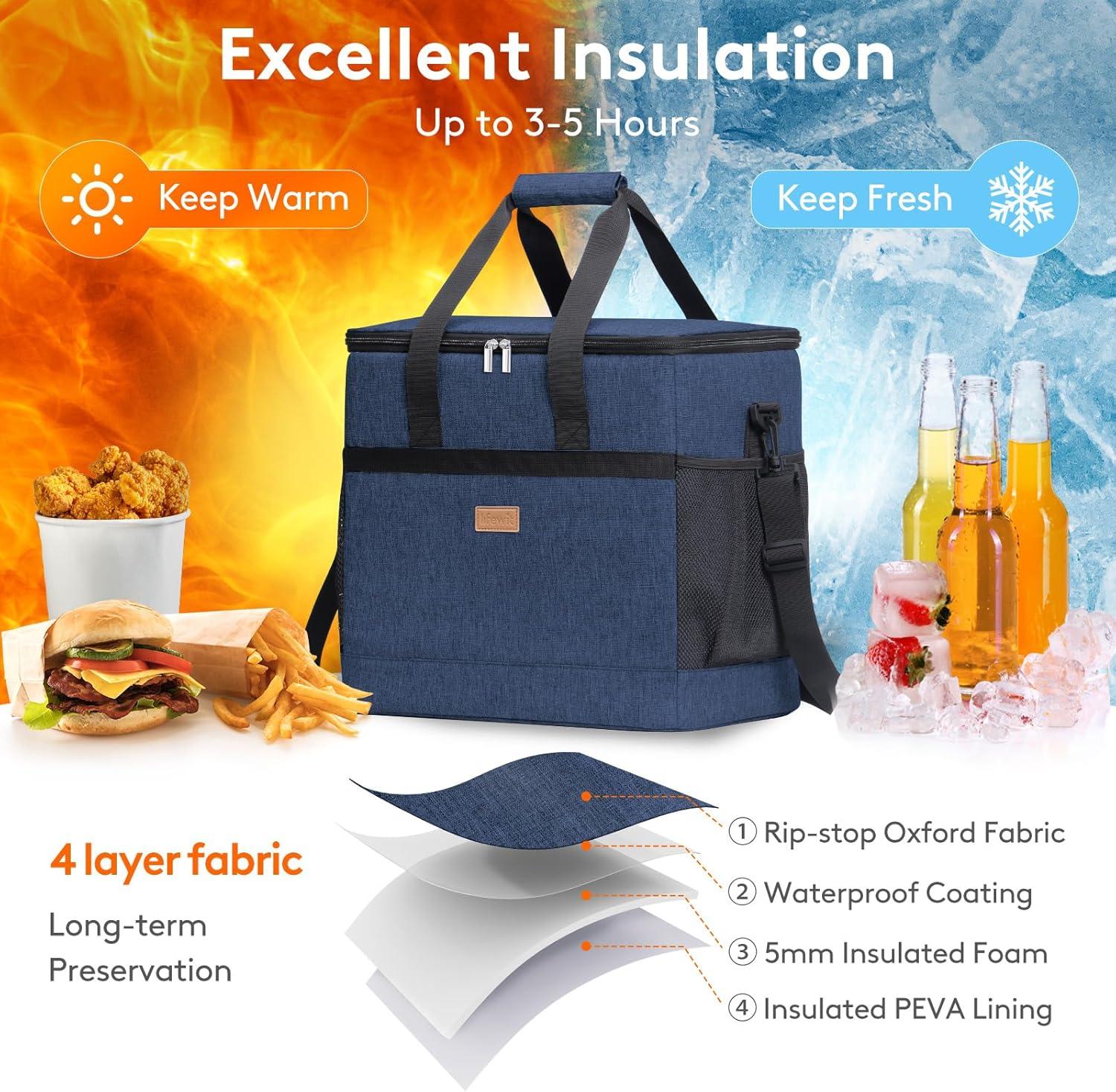 Lifewit Cooler Bag 30/50/60 Cans Collapsible and Insulated Large Lunch Bag Leakproof Soft Cooler Portable Tote for Camping/BBQ/Family Outdoor Activities(Dark Blue)