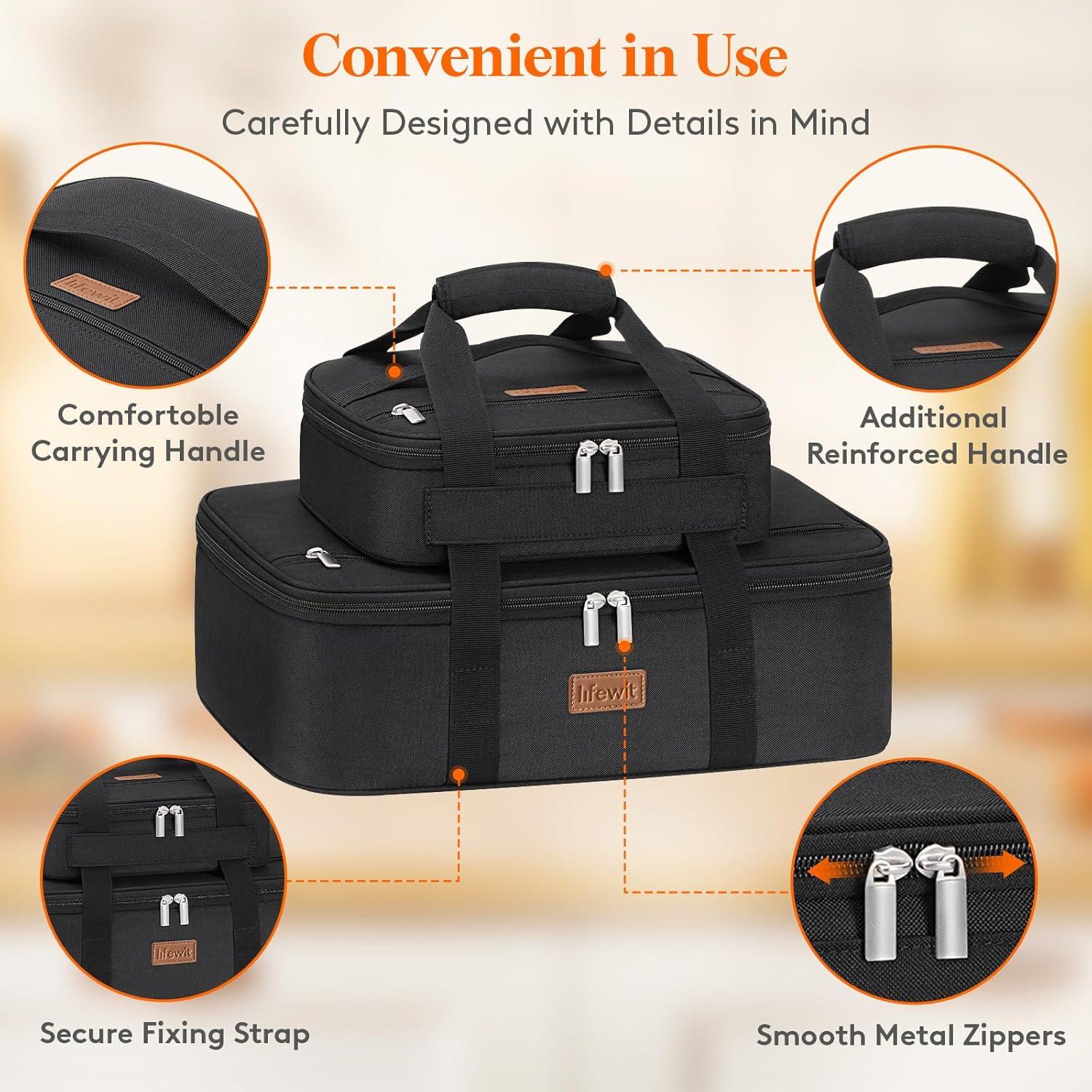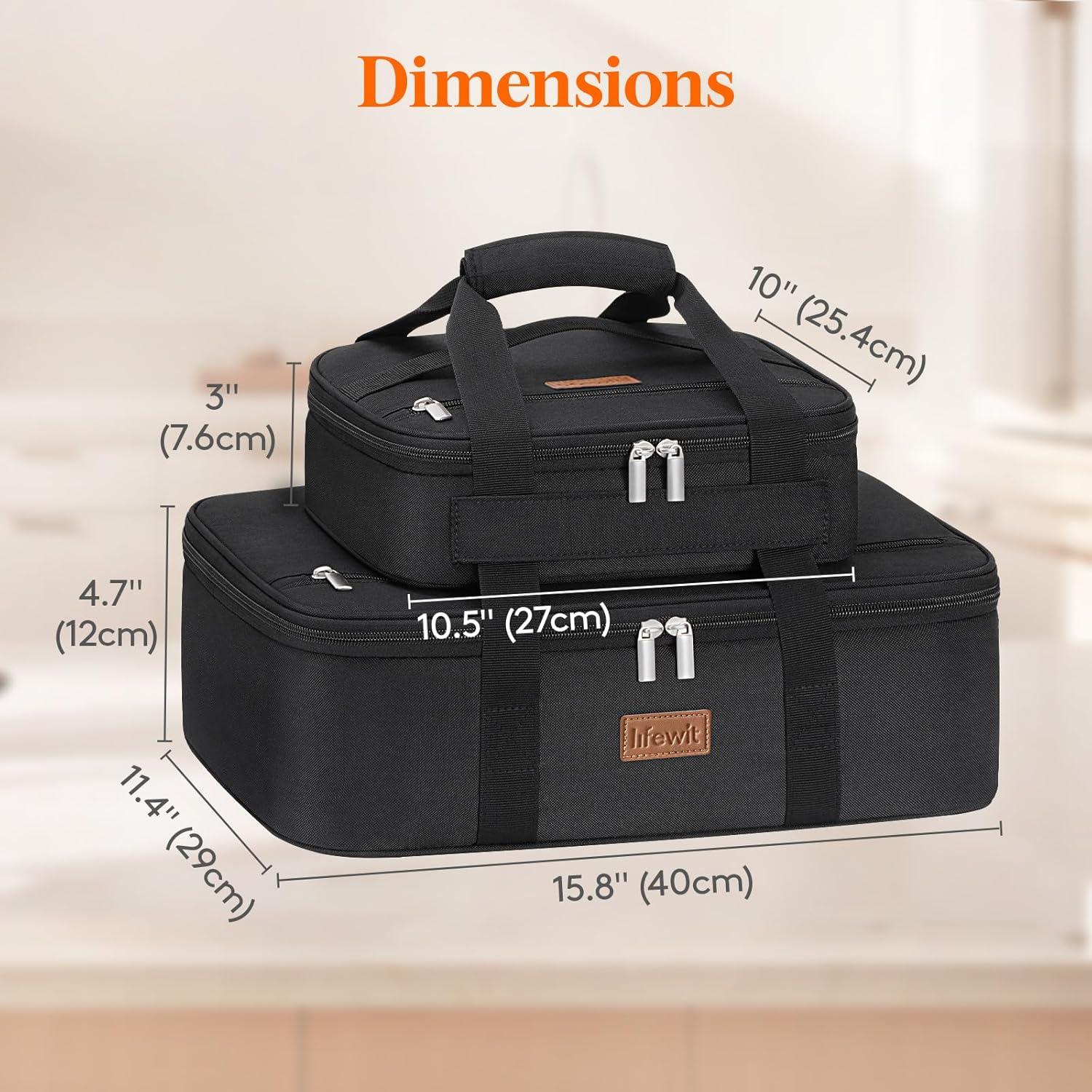 Lifewit Duo Insulated Casserole Carrier for Hot or Cold Food, Lasagna Holder 2 Compartments, Thermal Lunch Tote for Potluck Parties Cookouts, Fits 9″x13″ Casserole Dish, Gray(Black)