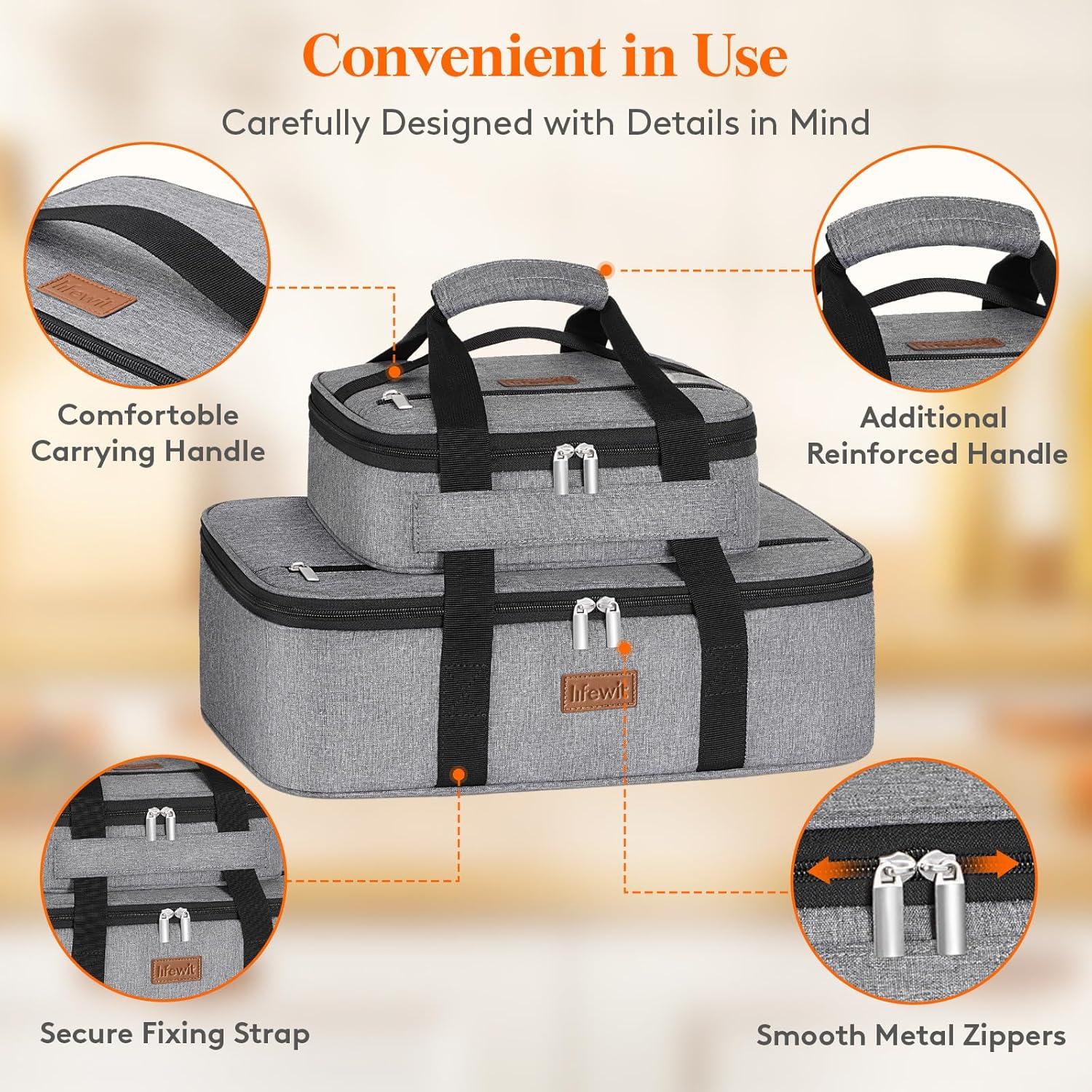 Lifewit Duo Insulated Casserole Carrier for Hot or Cold Food, Lasagna Holder 2 Compartments, Thermal Lunch Tote for Potluck Parties Cookouts, Fits 9″x13″ Casserole Dish, Gray(Gray)