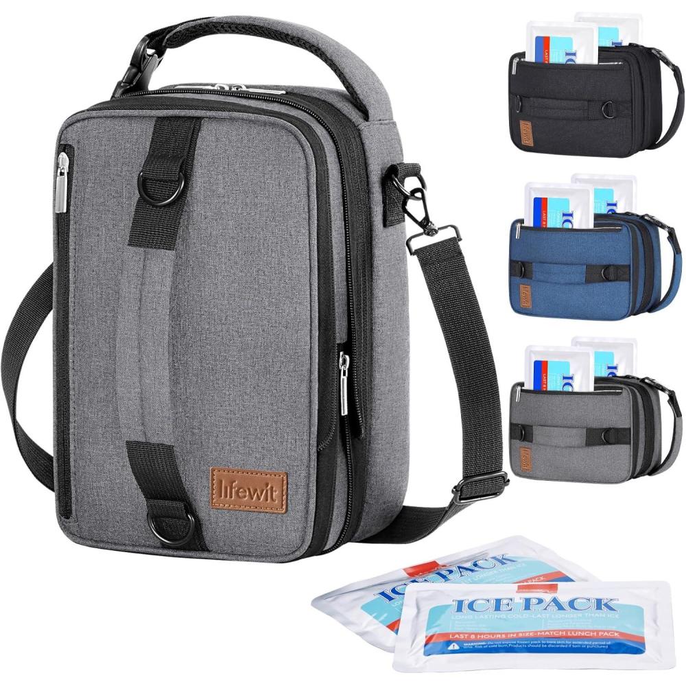 Lifewit Expandable Lunch Box for Men, Insulated Lunch Bag, Portable Cooler Bag with Shoulder Straps and 2 Ice Packs for Men Women Adult for Work College Travel, 6.5L 12 Cans Black(Gray)
