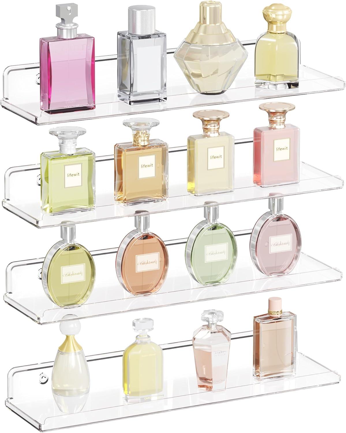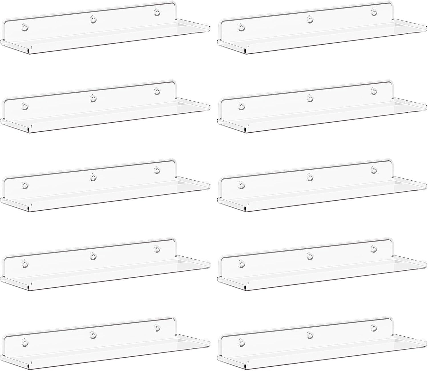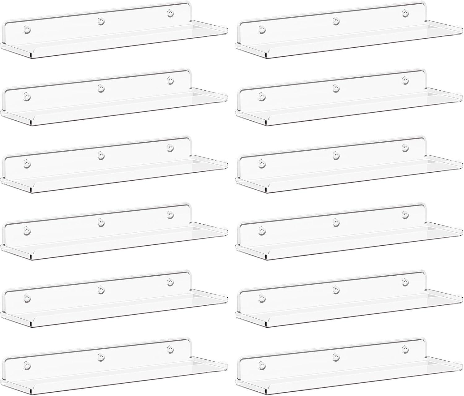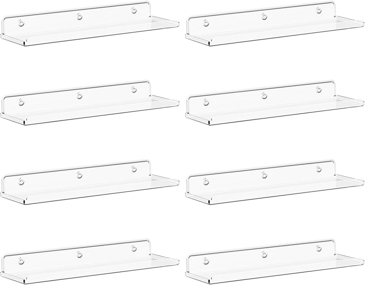 Lifewit Floating Shelves for Wall, 6 Pack 15″ Clear Acrylic Shelf Room Decor for Book/Figures/Photo/Makeup in Bathroom, Book Shelf, Living Room, Bedroom, Kitchen Storage and Organization(Clear)