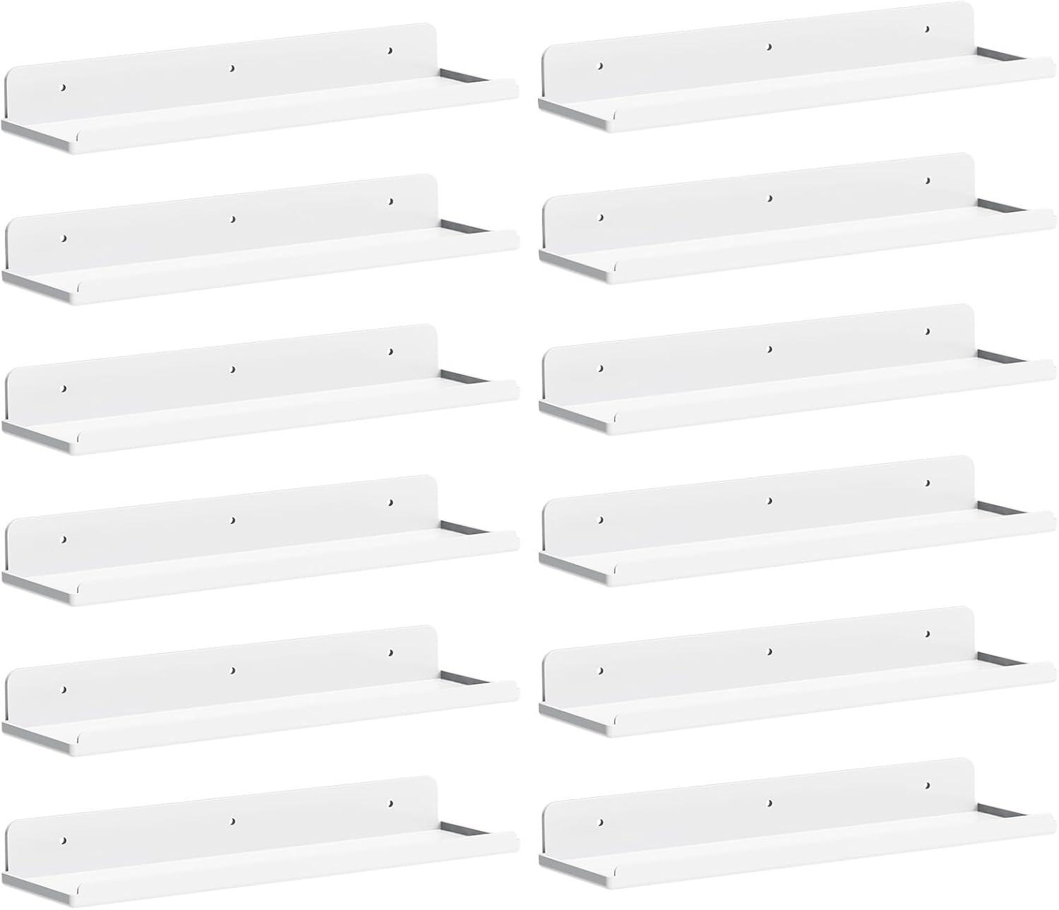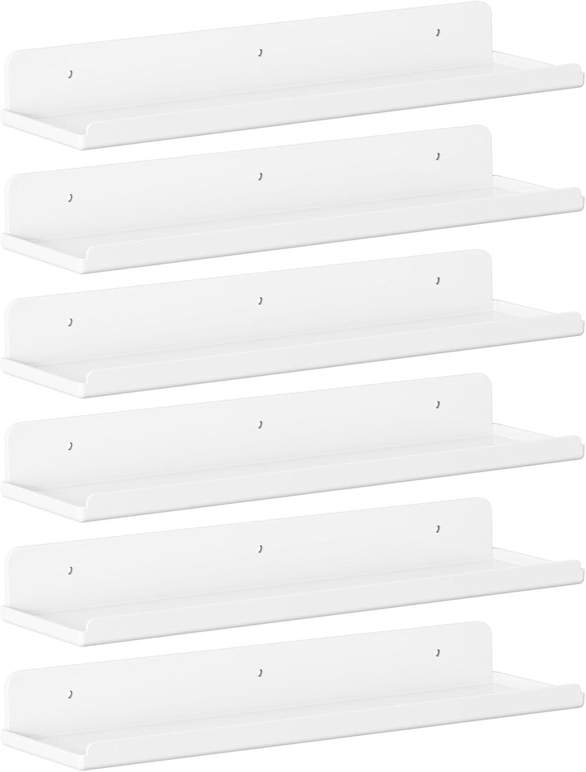 Lifewit Floating Shelves for Wall, 6 Pack 15″ Clear Acrylic Shelf Room Decor for Book/Figures/Photo/Makeup in Bathroom, Book Shelf, Living Room, Bedroom, Kitchen Storage and Organization(White)