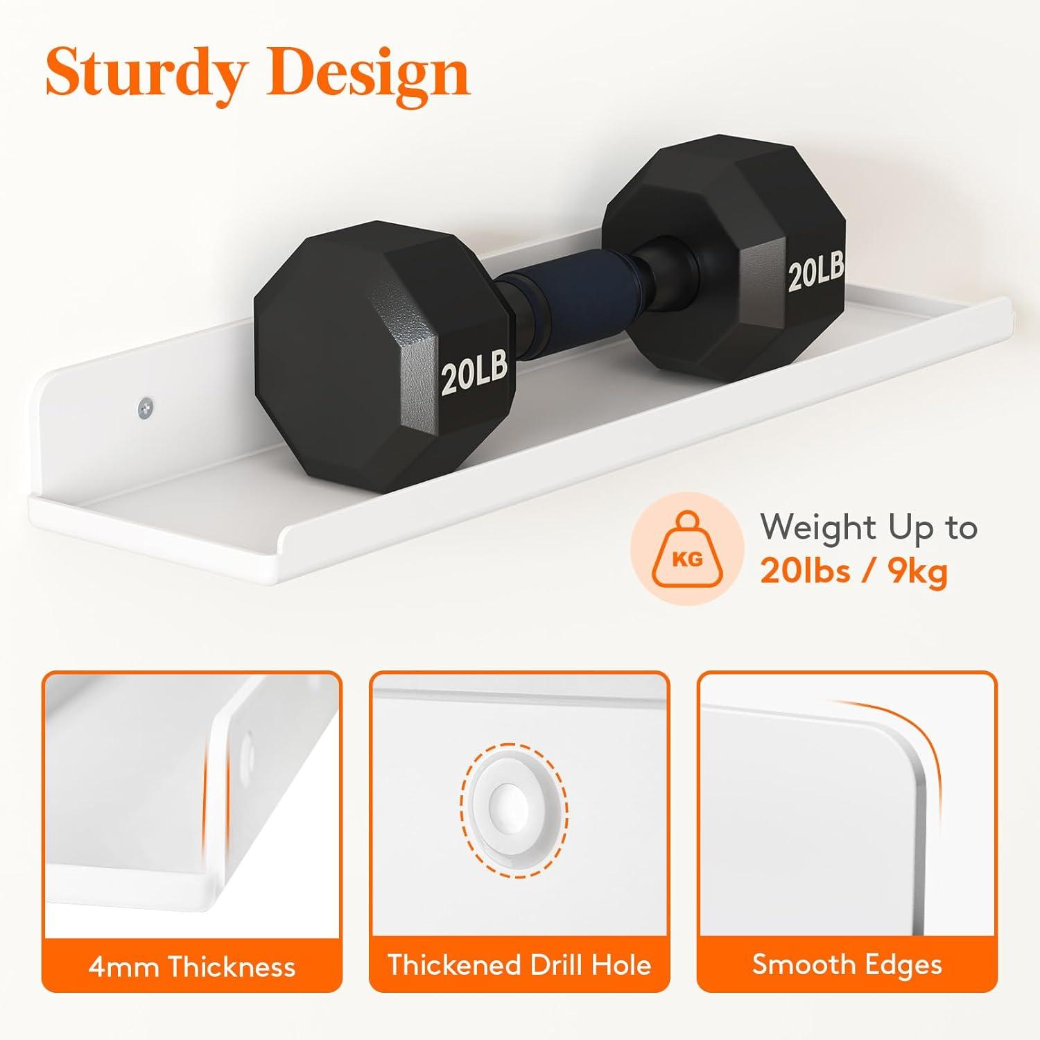 Space Saving: Floating shelves make full use of wall space, allowing you to conveniently store and organize various items. With a length of 15 inches(38.1cm) and a width of 4 inches(10.16cm), it can accommodate books, toys, figurines, nail polishes, photo frames, records, certificates, and more.