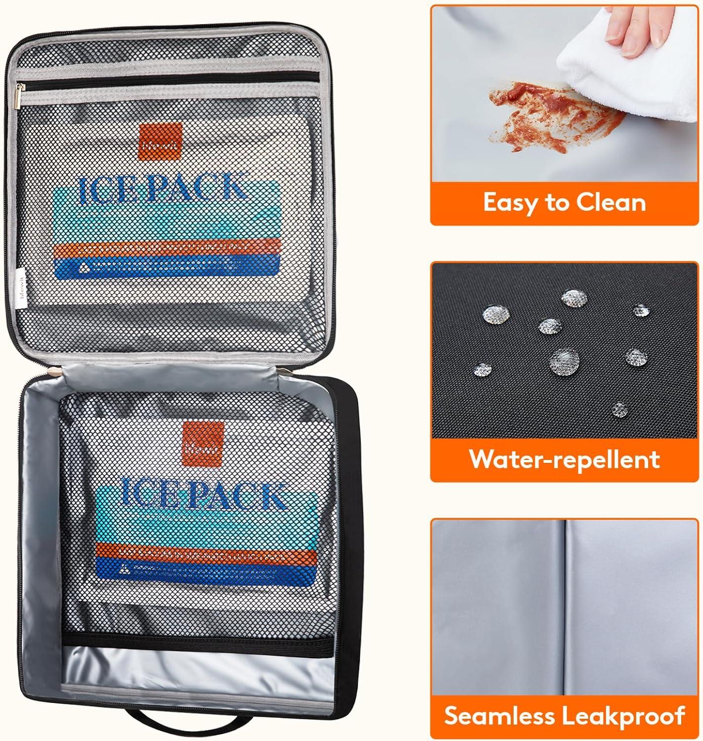 Removable Gel Packs: Equipped with 2 removable safe gel ice packs, it's more easy to clean and dry the lunch box, which is more suitable for wet food and drinks. This freezable lunch bag should be frozen for 6 hours before putting into the bag. If you need heat preservation, remove the gel packs and use the bag as it is. Gel packs are reusable and can be frozen but not heated