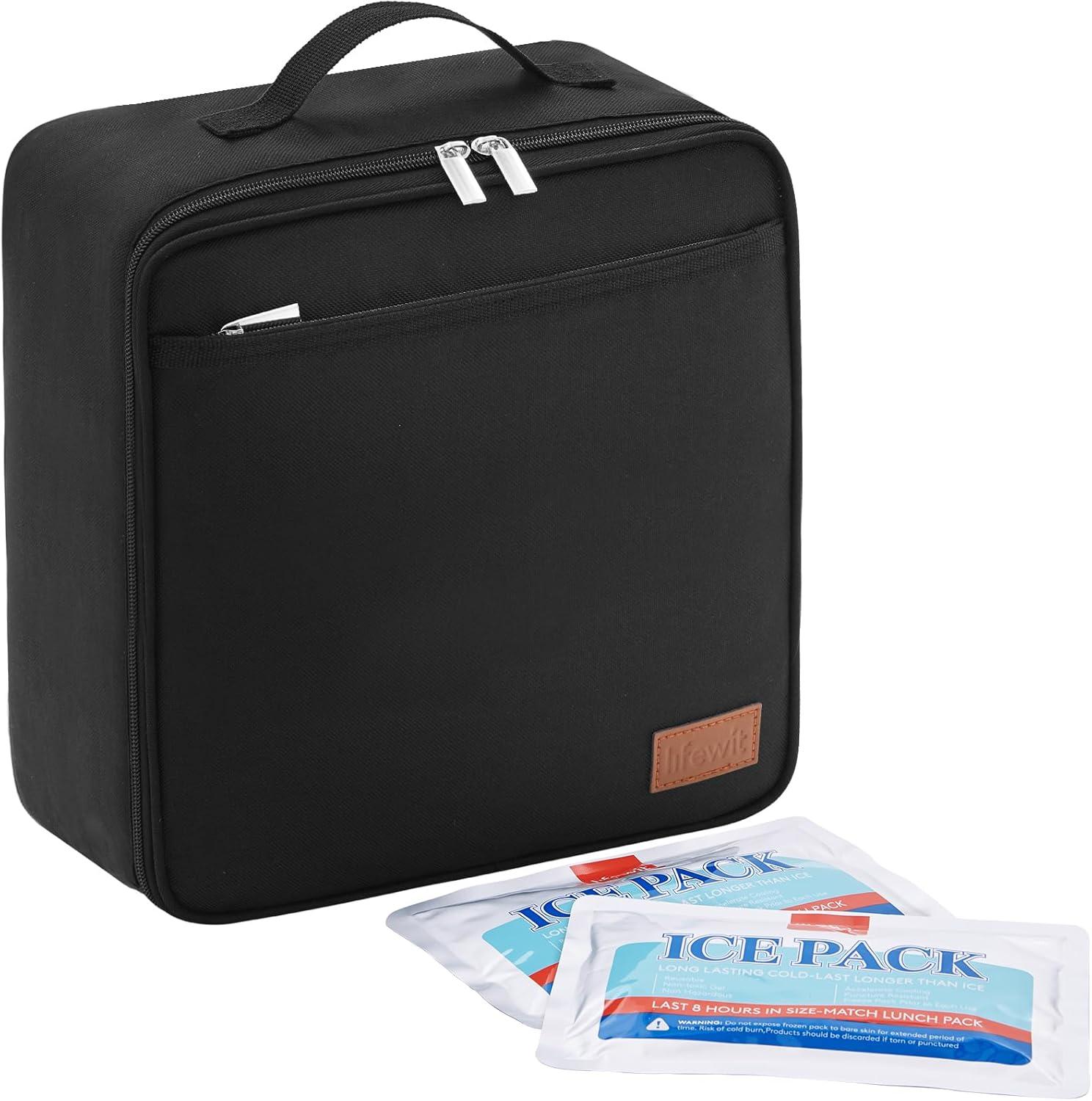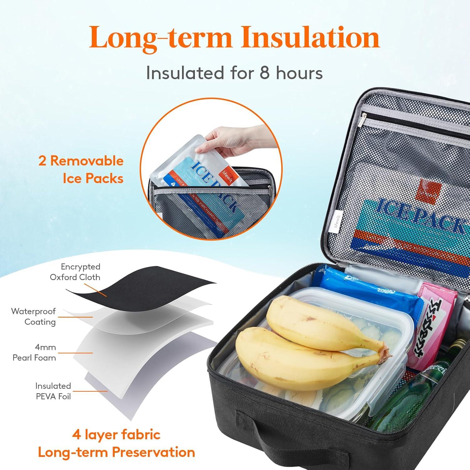 Lifewit Freezable Lunch Box, Insulated Reusable Lunch Bag with 2 Ice Packs, Mini Cooler Snack Bag for Bento Box for Salad, Sandwich, Snacks fo Men Women for Work, Black 5L(Black)