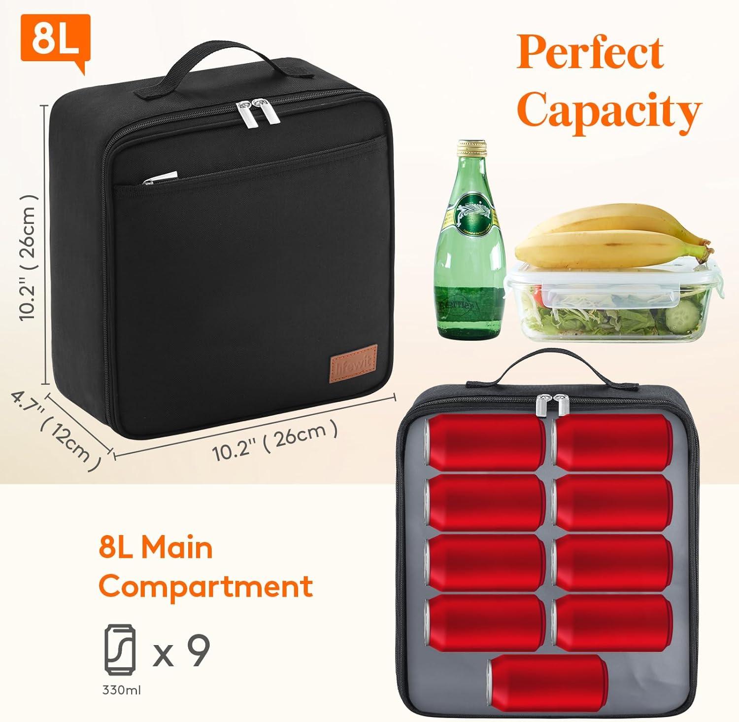 Perfect Capacity: Measures 10.2 x 7.1 x 4.3 Inches. Suitable for most standard-size lunch boxes and spacious enough to store 6 cans of 330ml coke. The total weight of the lunch box with ice packs is about 630g (the bag alone weighs 200g). Ideal for on the go for single-meal needs