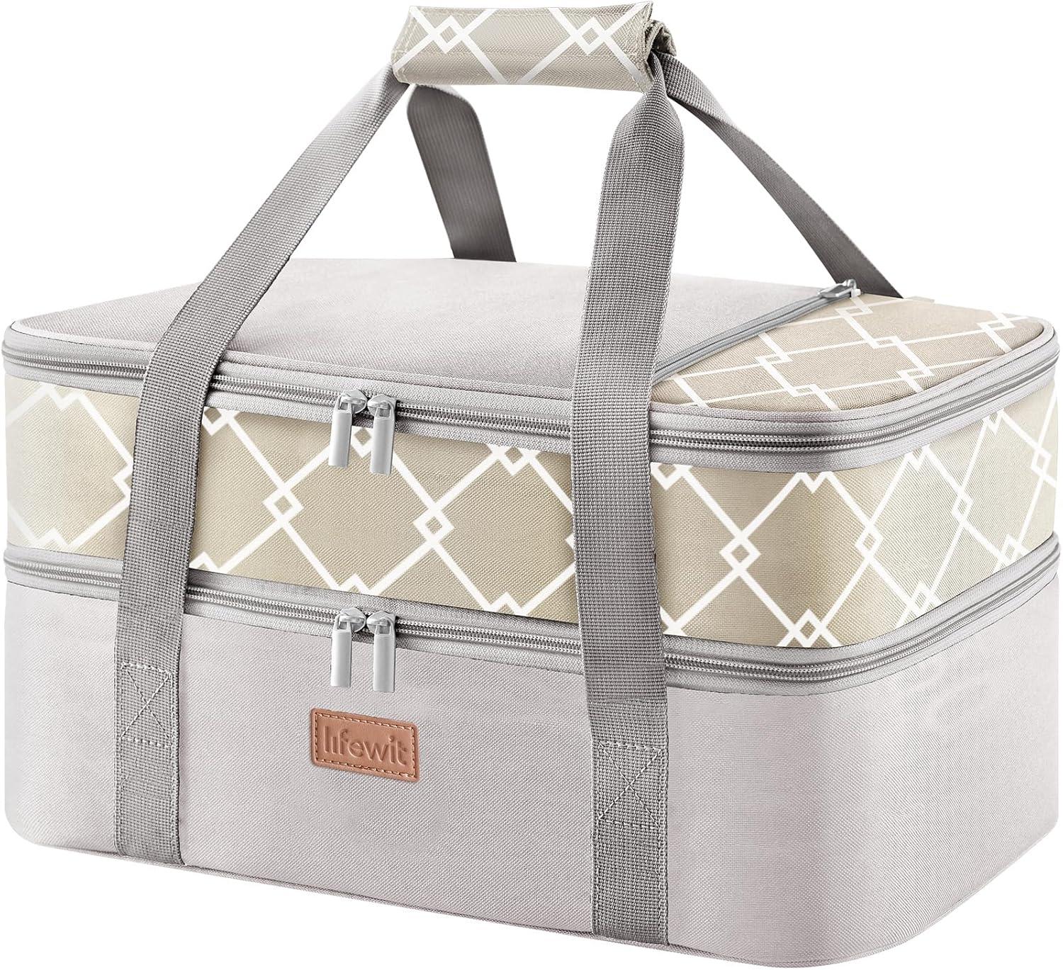 Lifewit Insulated Casserole Carrier for Hot or Cold Food, Casserole Dish Bag Carrying Case, Lasagna Lugger Holder for Potluck/Parties/Picnic/Cookouts, Fits 9″x13″ Baking Dish, Grey(Gray)