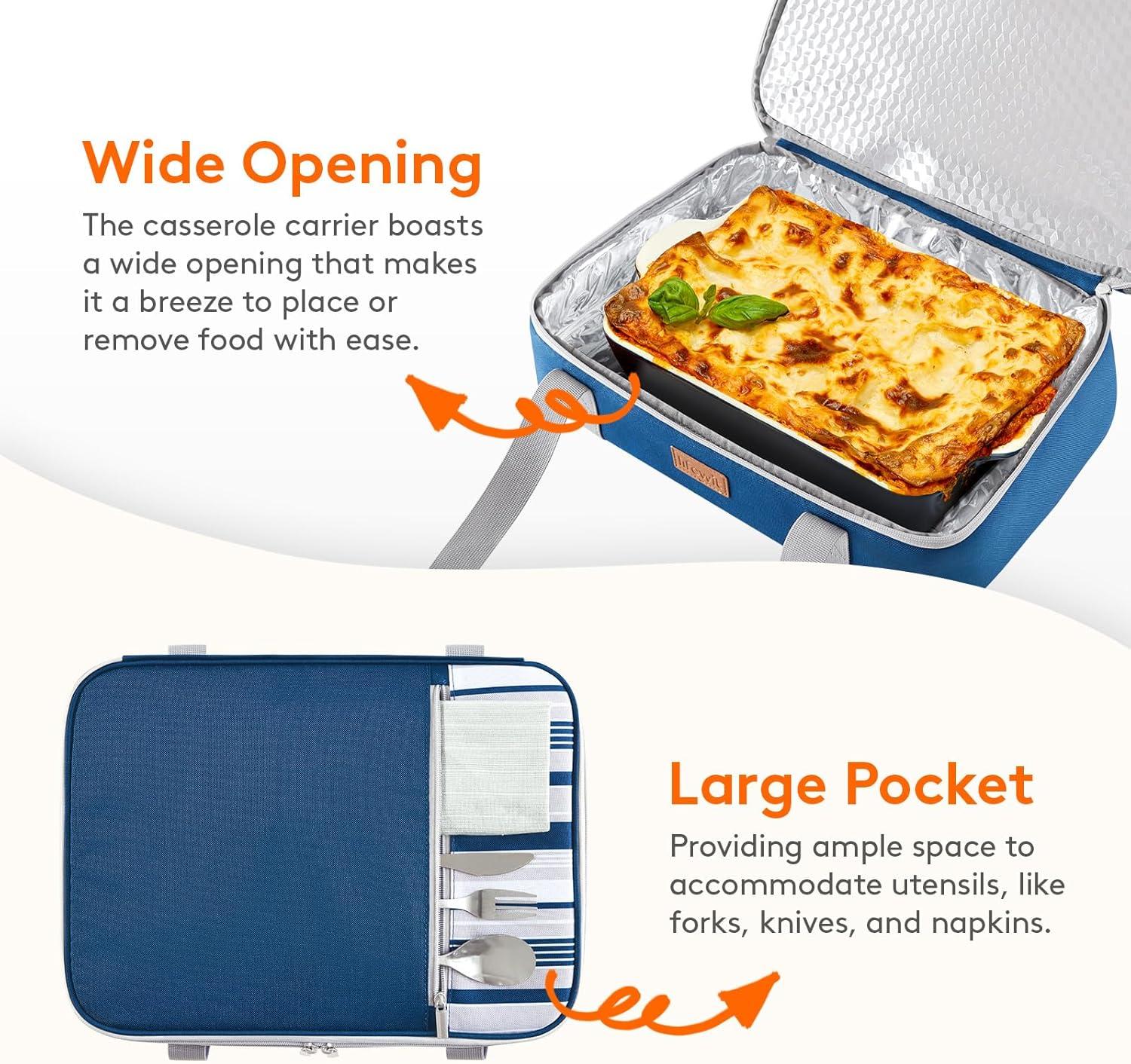 Lifewit Insulated Double Casserole Carrier Thermal Lunch Tote for Potluck Parties, Picnic, Beach, Fits 9 x 13 Inches Casserole Dish, Expandable by Mid Zipper, Grey(Blue)