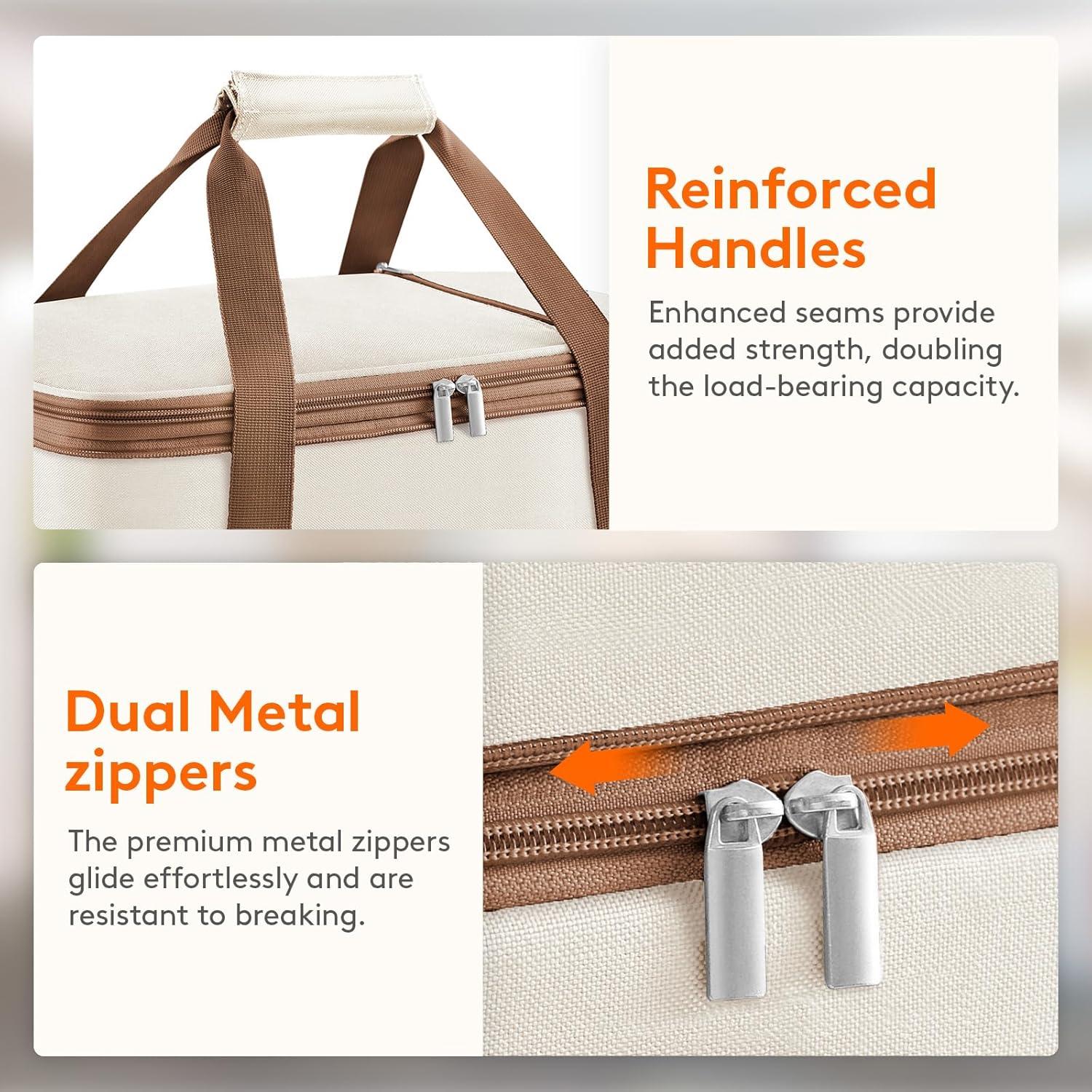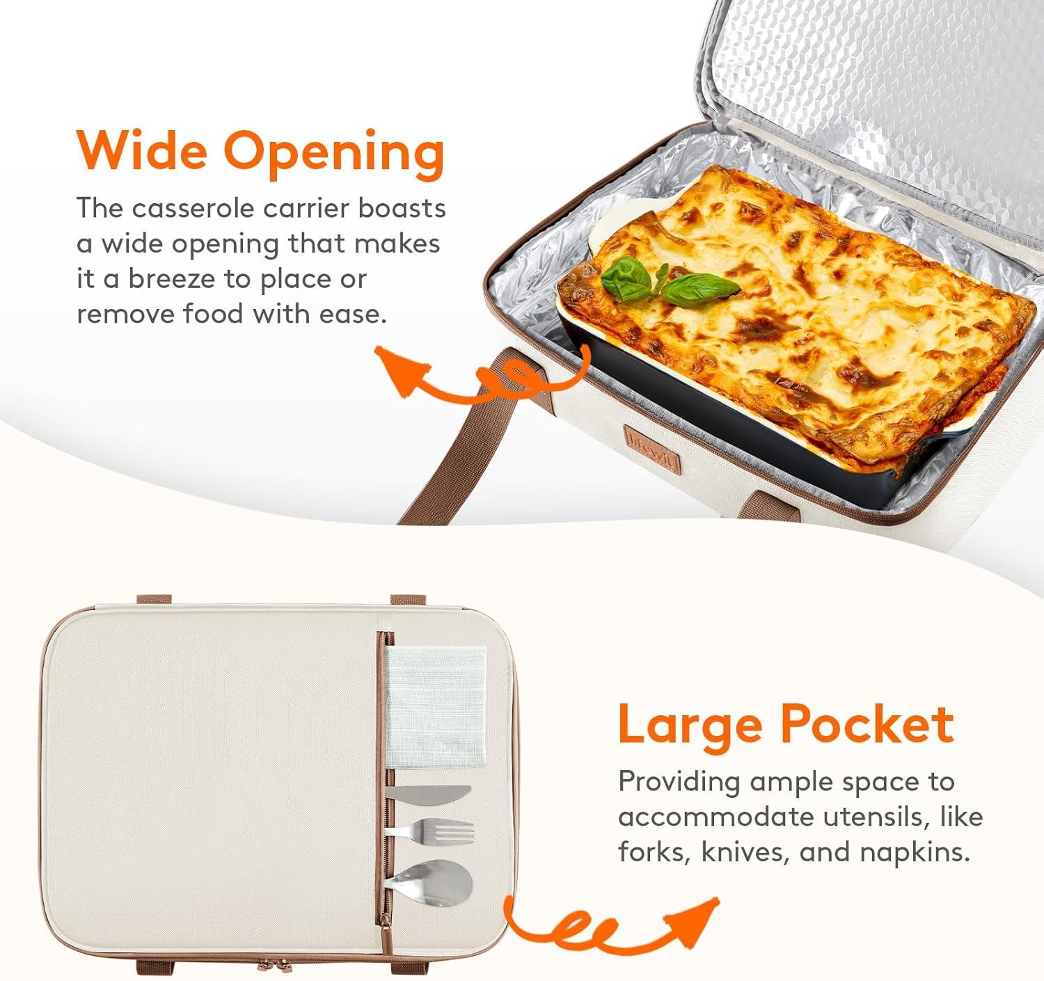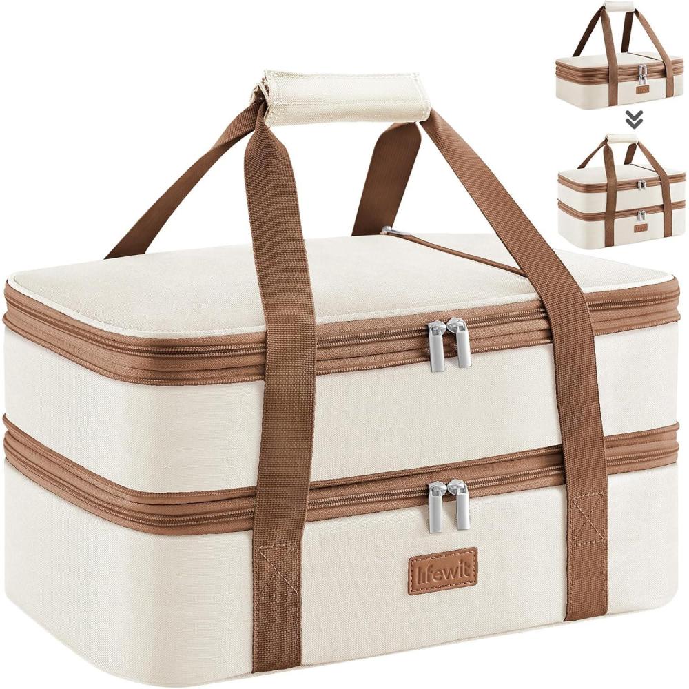 Lifewit Insulated Double Casserole Carrier Thermal Lunch Tote for Potluck Parties, Picnic, Beach, Fits 9 x 13 Inches Casserole Dish, Expandable by Mid Zipper, Grey(Cream)