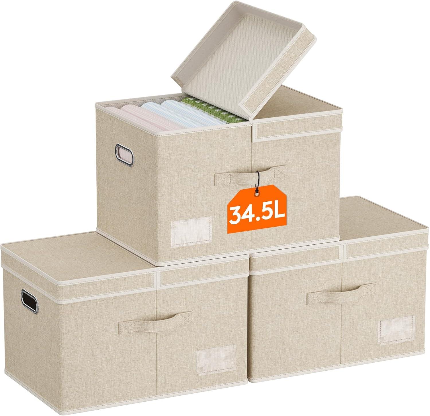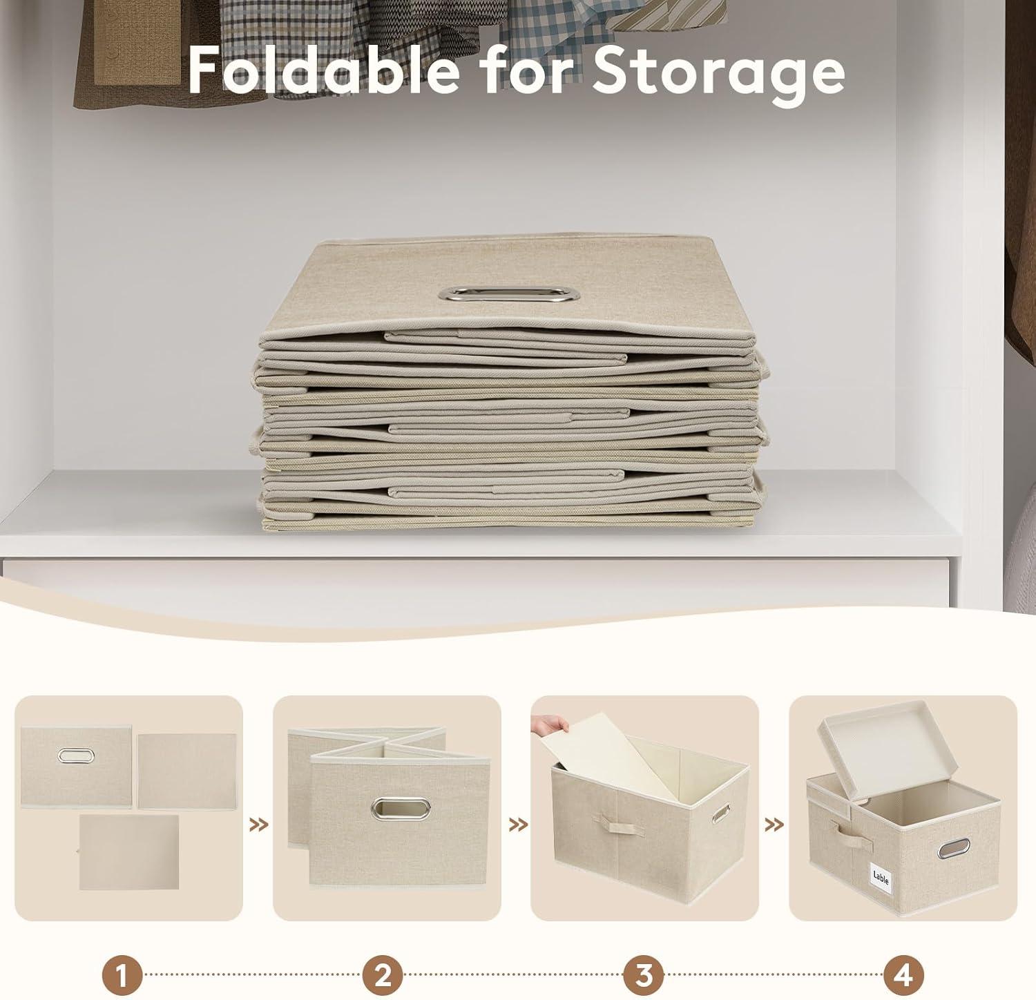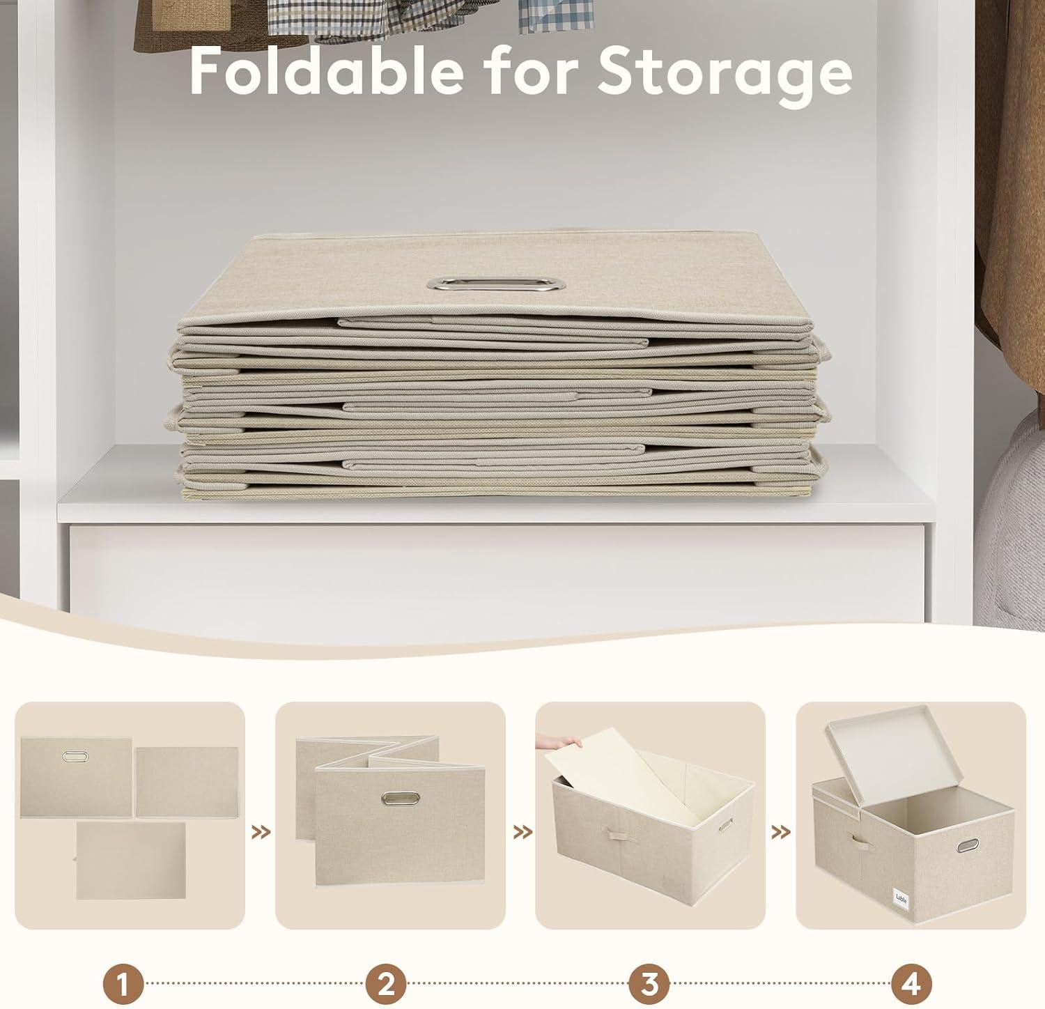 Lifewit Large Clothes Storage Bins with Lids, Fabric Foldable Storage Boxes with Handles, Decorative Closet Organizer, Stackable Cube Baskets Container for Bedroom, Office, 2 Packs, 34.5L Beige(3)