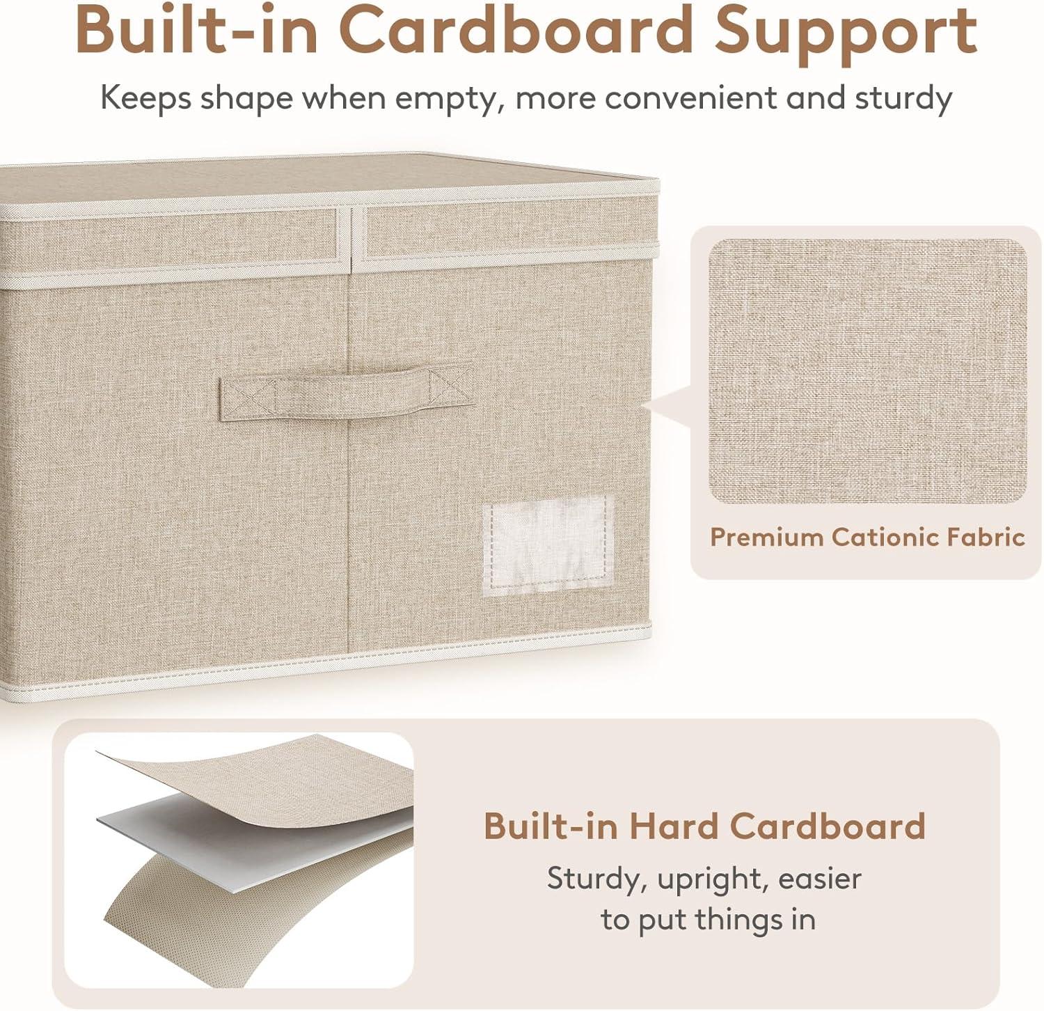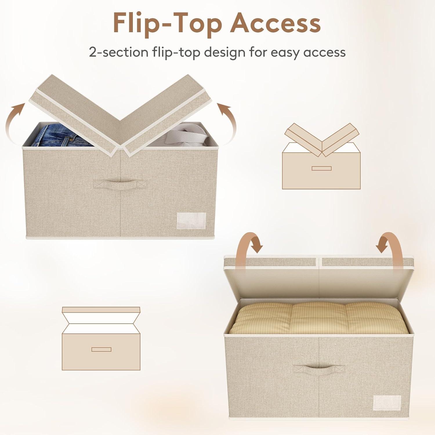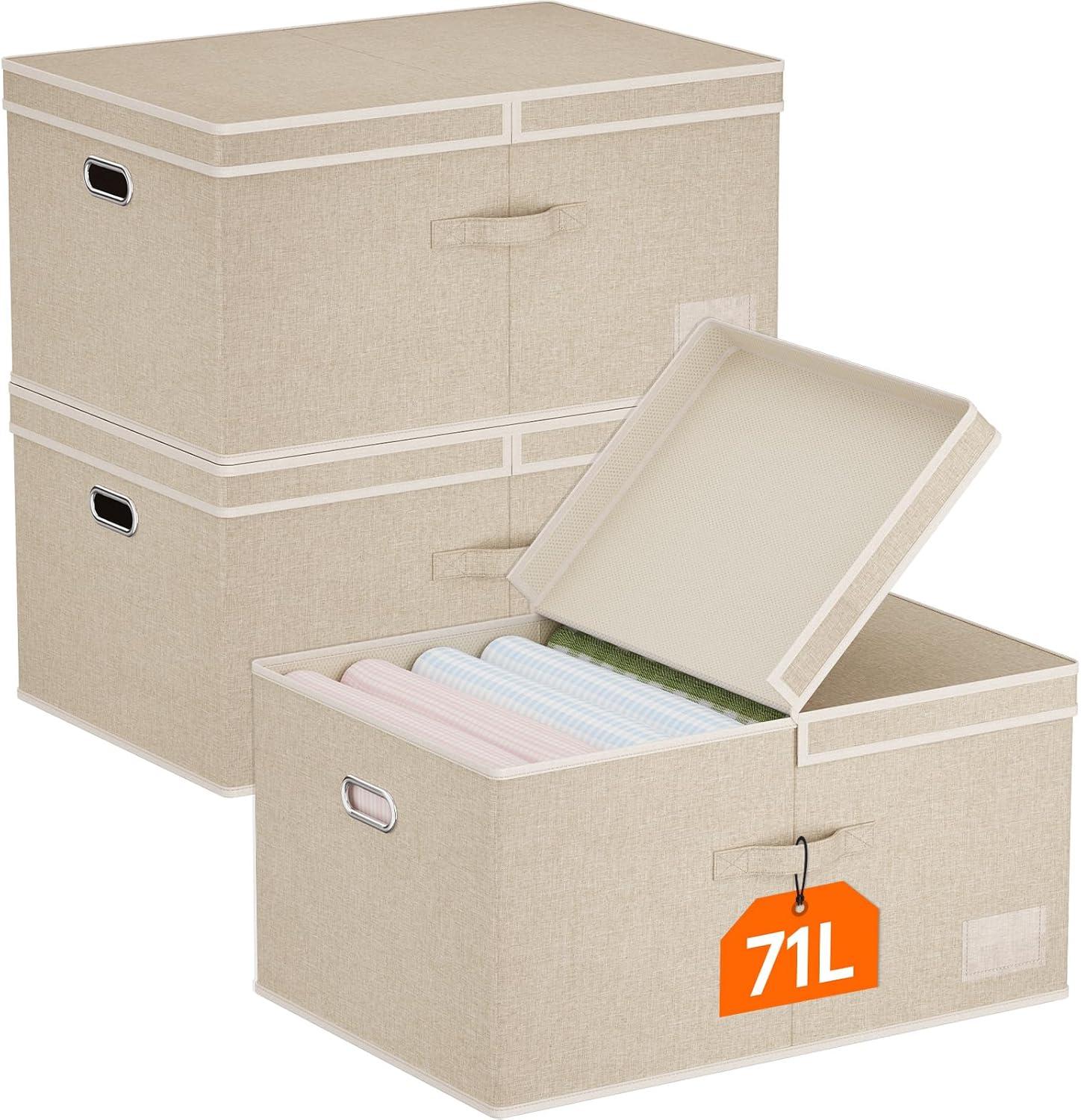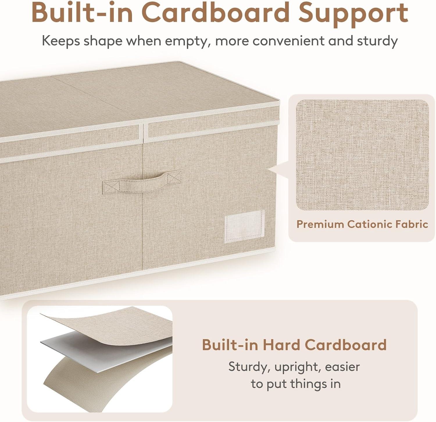 Lifewit Large Clothes Storage Bins with Lids, Fabric Foldable Storage Boxes with Handles, Decorative Closet Organizer, Stackable Cube Baskets Container for Bedroom, Office, 2 Packs, 34.5L Beige(3)