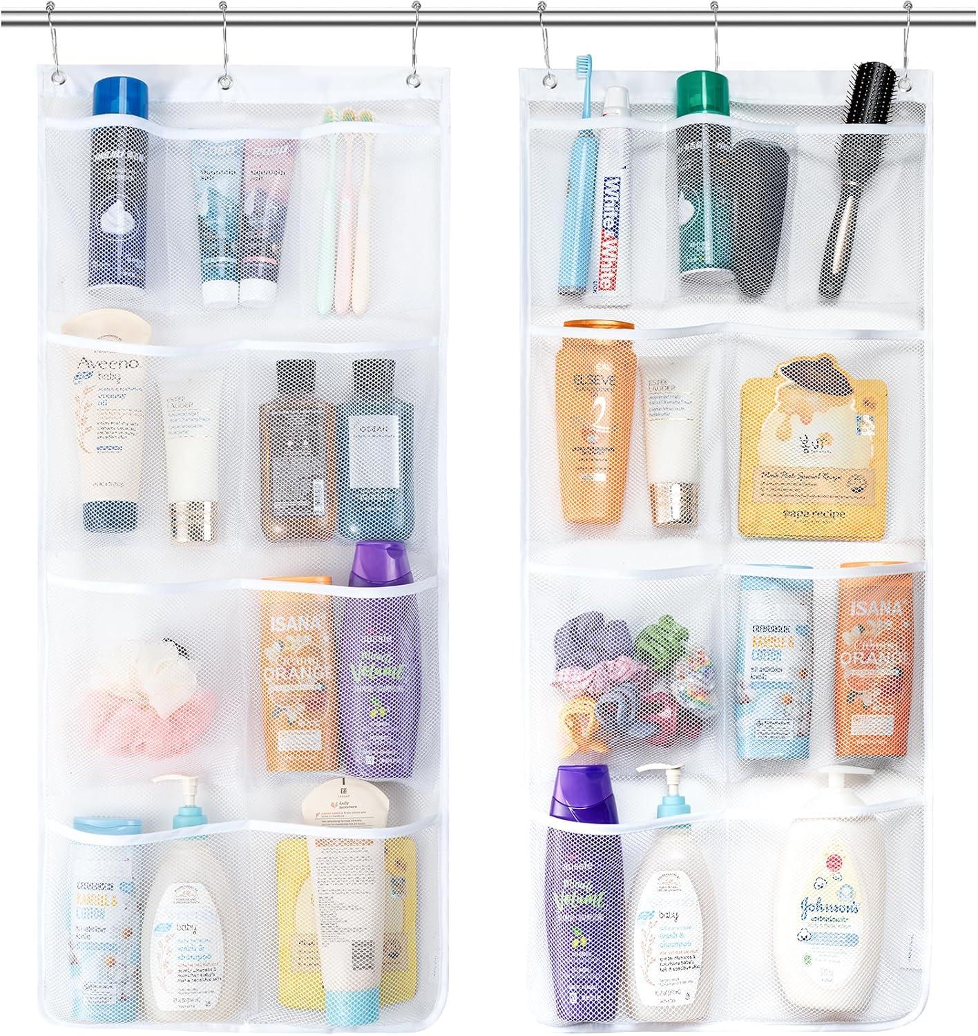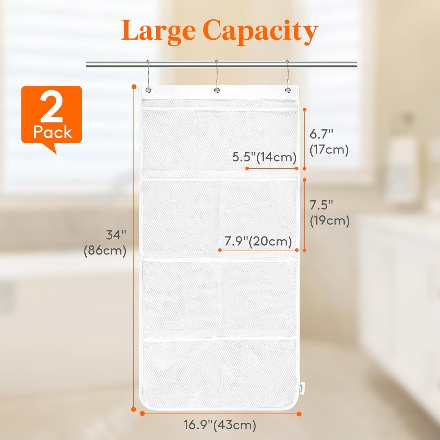 Lifewit Mesh Shower Caddy, 7 Pockets Hanging Shower Organizer with Quick Drying Mesh, Portable Space Saving Bathroom Organizer to Hold Soap, Shampoo and Cruise Ship Essentials, White, 2 Pack(2)