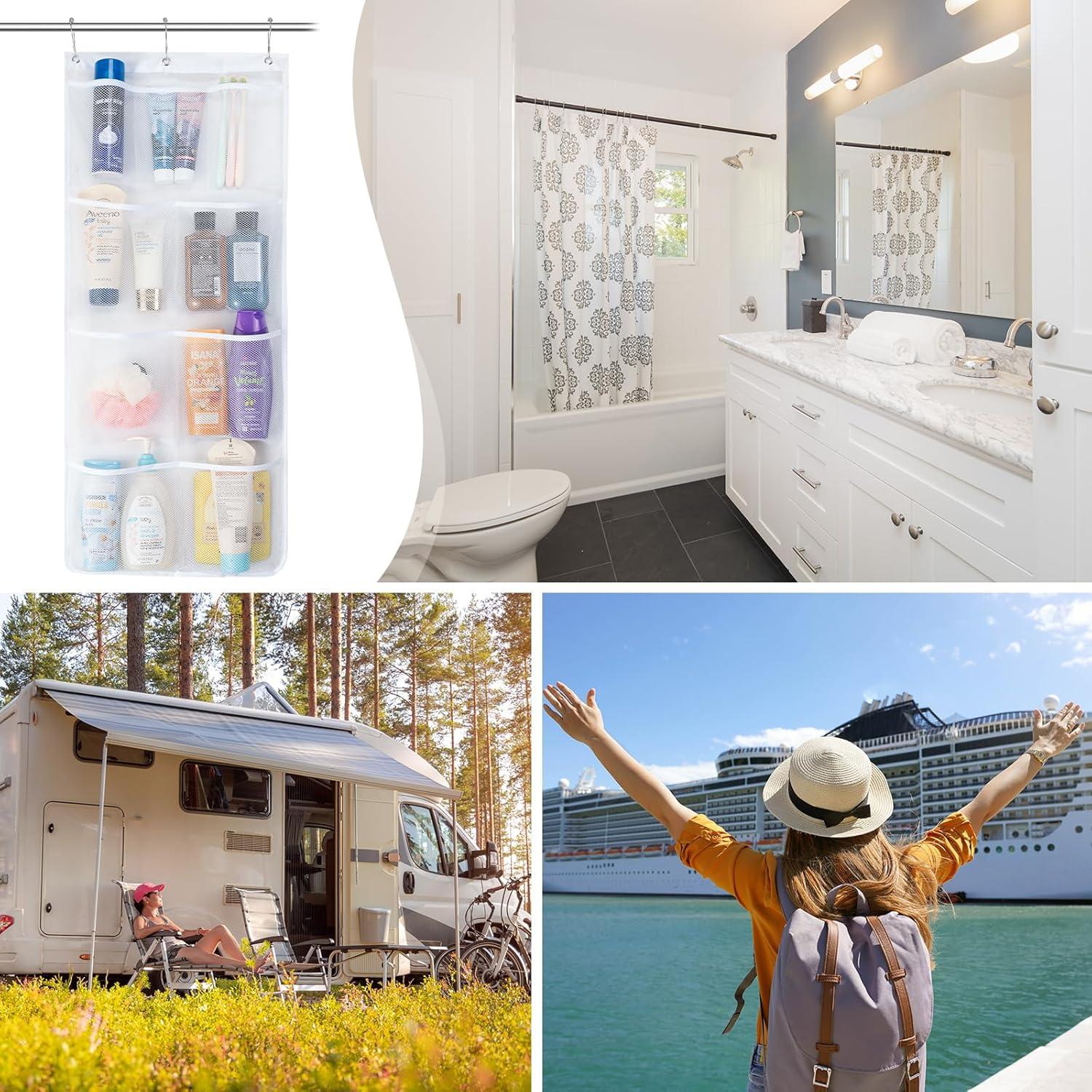 Lightweight and Portable: This mesh shower caddy hanging is not only lightweight but also easy to carry. Aside from being suitable for use in home bathrooms, school dormitories, and changing rooms, it can effortlessly fit into your luggage. It is perfect for travel, camping, cruising, and RVing.