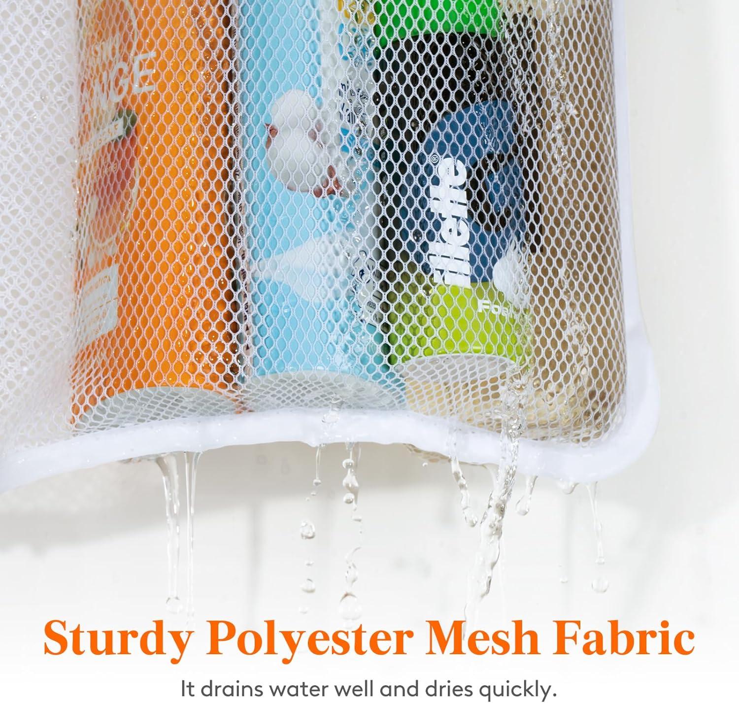 Sturdy Material: Crafted from 100% tear-resistant polyester mesh fabric, this bathroom organizer is designed to last. It effectively drains water, ensuring quick drying and preventing your items from sitting in water. Please note, it is recommended for hand-washing only.