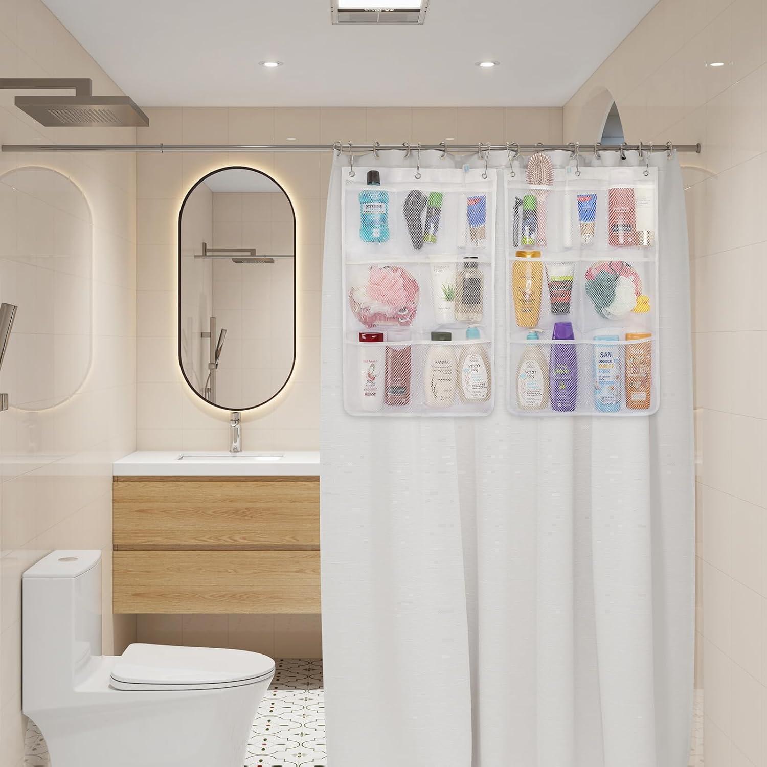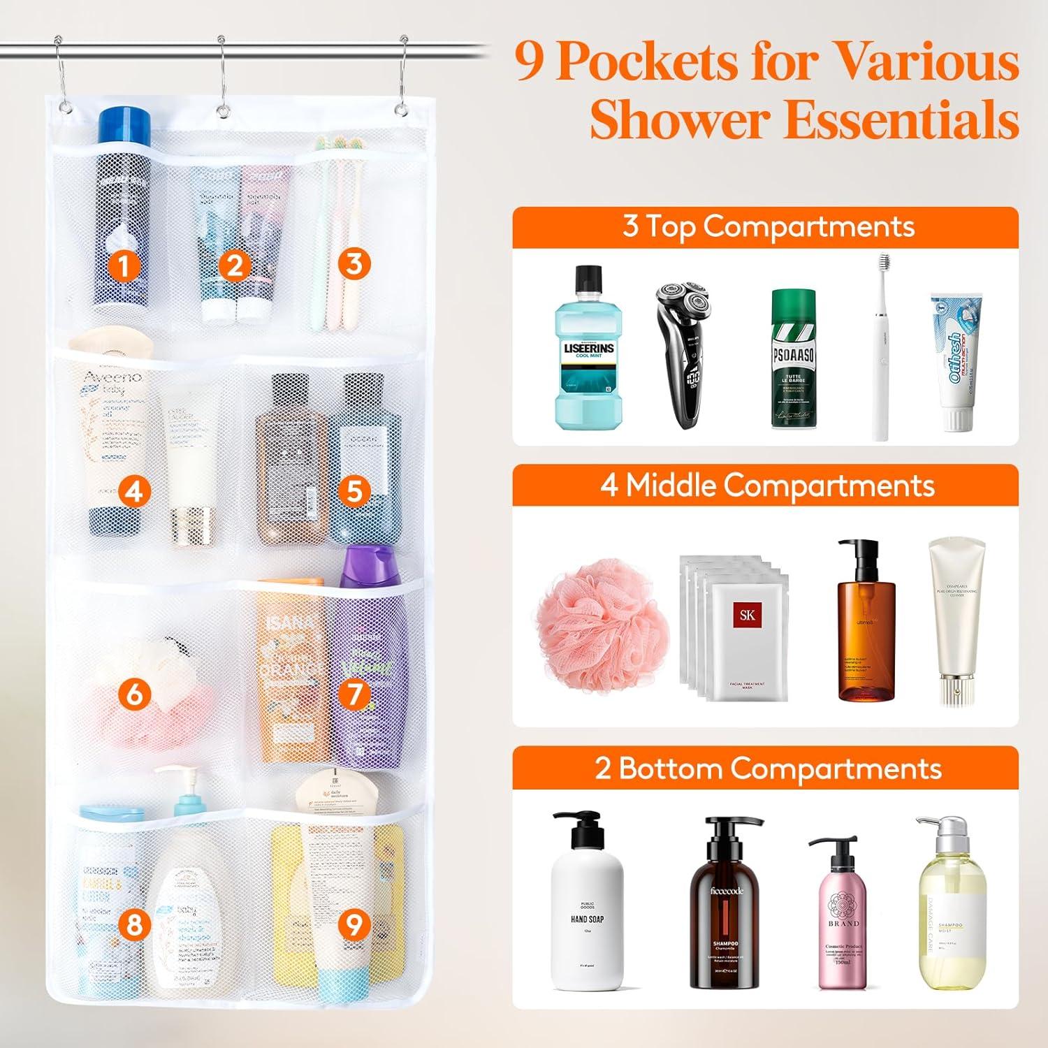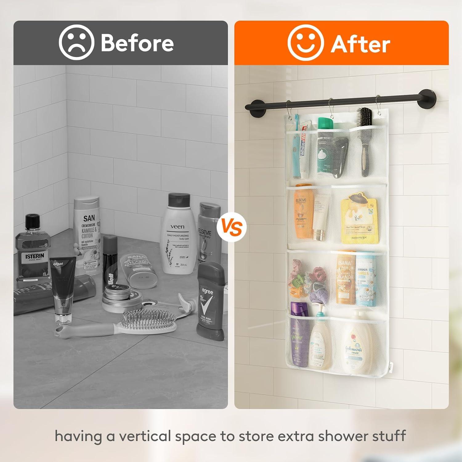 Large Capacity: The shower organizer hanging measures 25.6''(65cm) x 16.9''(43cm), creating quick and convenient vertical storage space for shower place, allowing shower essentials to be neatly organized together