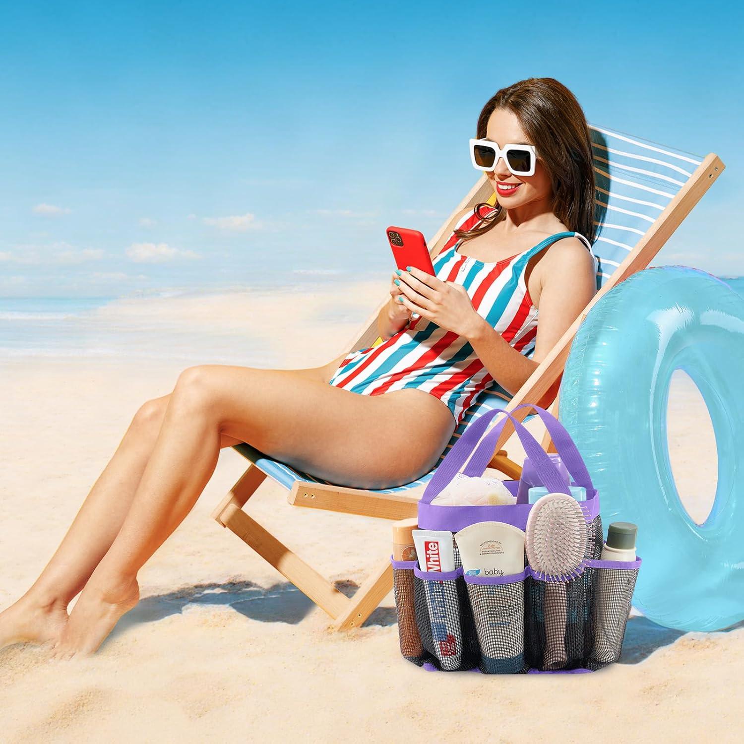 Lifewit Mesh Shower Caddy Freestanding Portable Shower Tote Bag for College Dorm, Bathroom, Gym, Travel, Quick Dry Hanging Organizer with 7 Storage Pockets for Toiletry Essentials, Medium,Black(Purple)