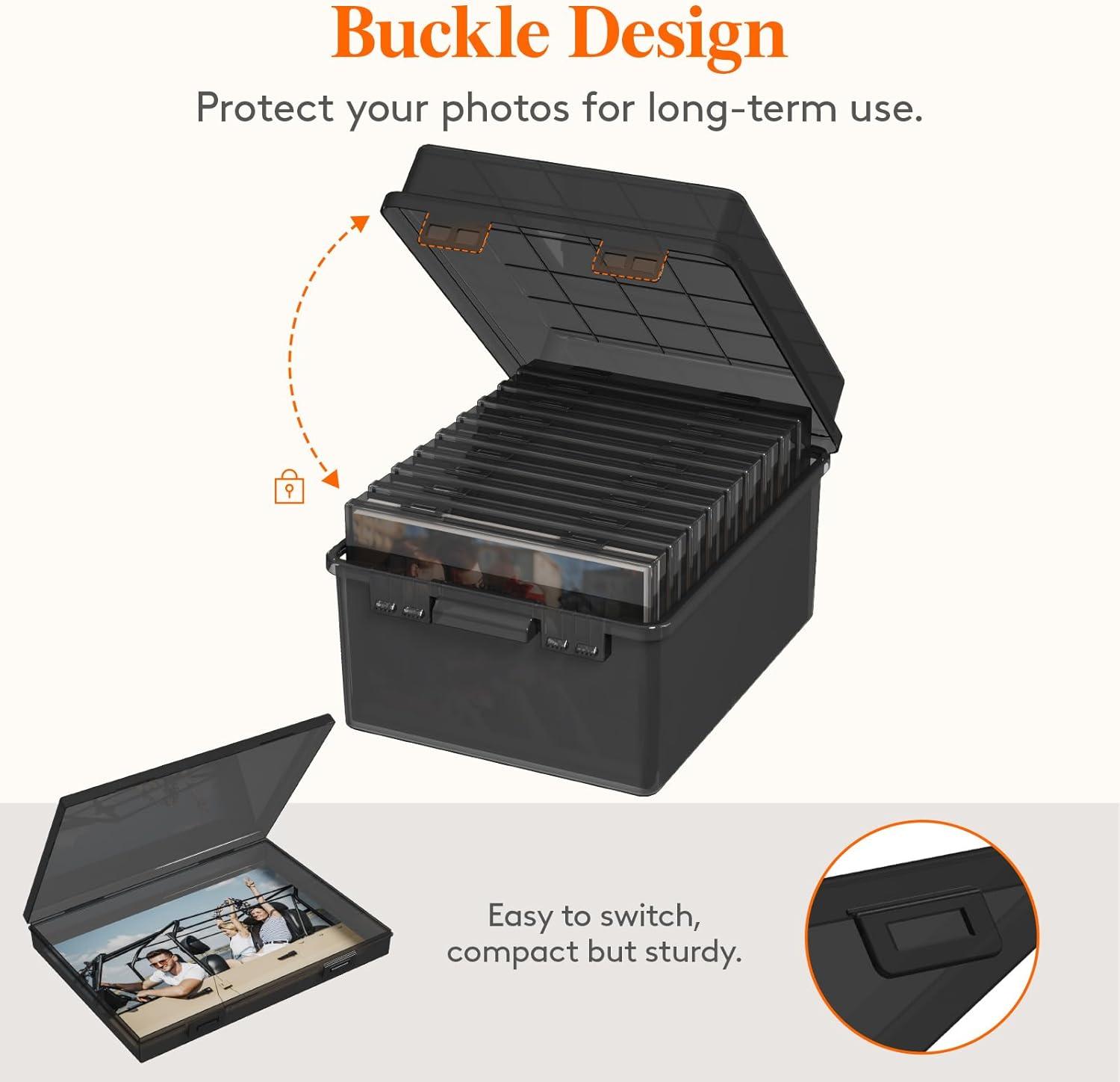 Lifewit Photo Storage Box 5×7 Photo Case, 7 pcs Inner Photo Storage Containers, Clear Photo Boxes, Seed Organizer Craft Storage Box for Cards Pictures Stamps Office Supplies with 1 Sheet Label Sticker(Black)