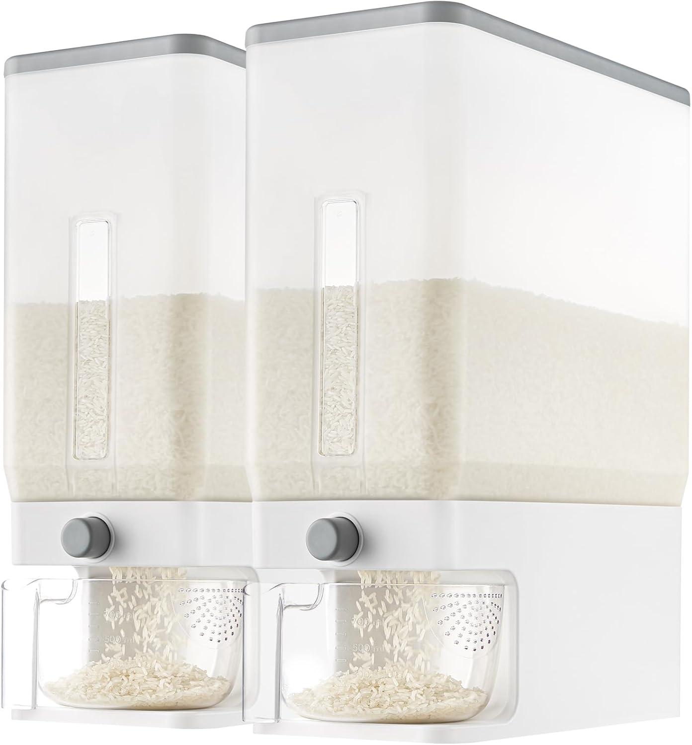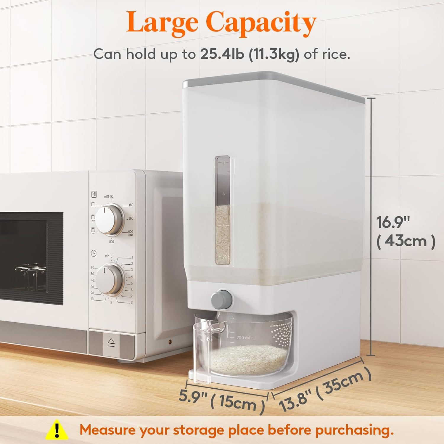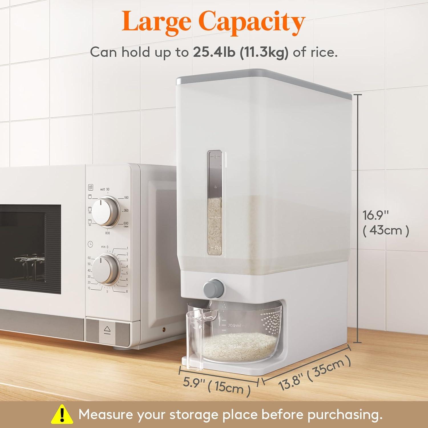 Lifewit Rice Dispenser 25 Lbs(11.3kg), Rice Storage Container Sealed Moisture Proof with Measuring Cup for Kitchen Pantry Household, BPA-Free, 1 Pack(Clear)