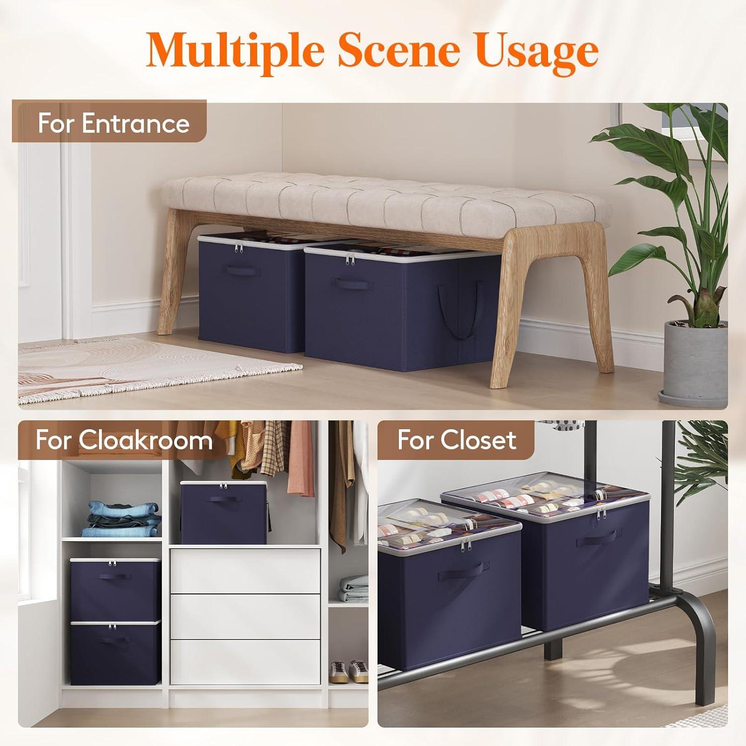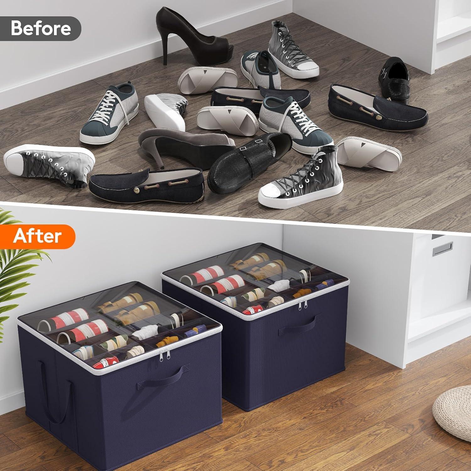 Lifewit Shoe Storage Organizer for Closet Fits 12-16 Pairs, Fabric Large Shoe Box Storage Containers with Clear Cover, Foldable Bins Fit for Boots Heels Sneakers 17″(L) x 17″(W) x 12.5″(H) 2 Pack Gray(Blue)