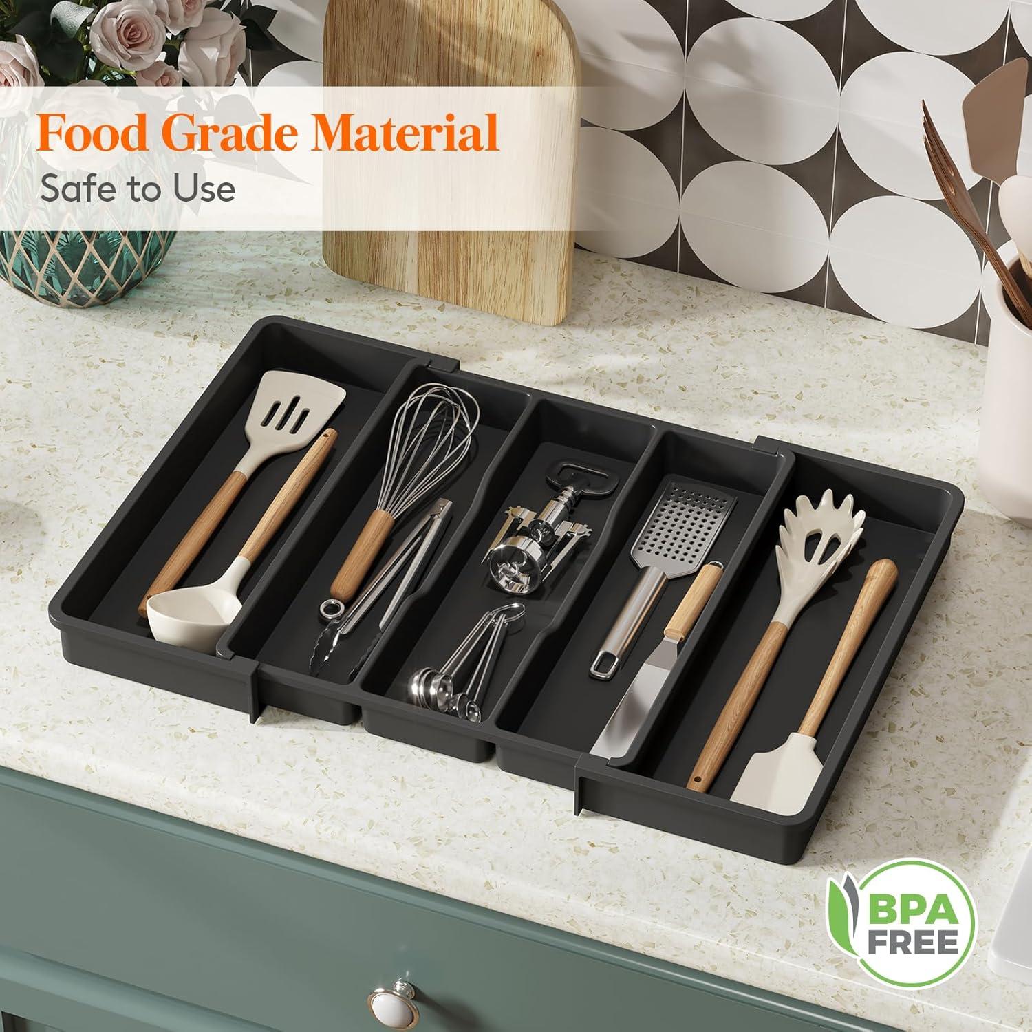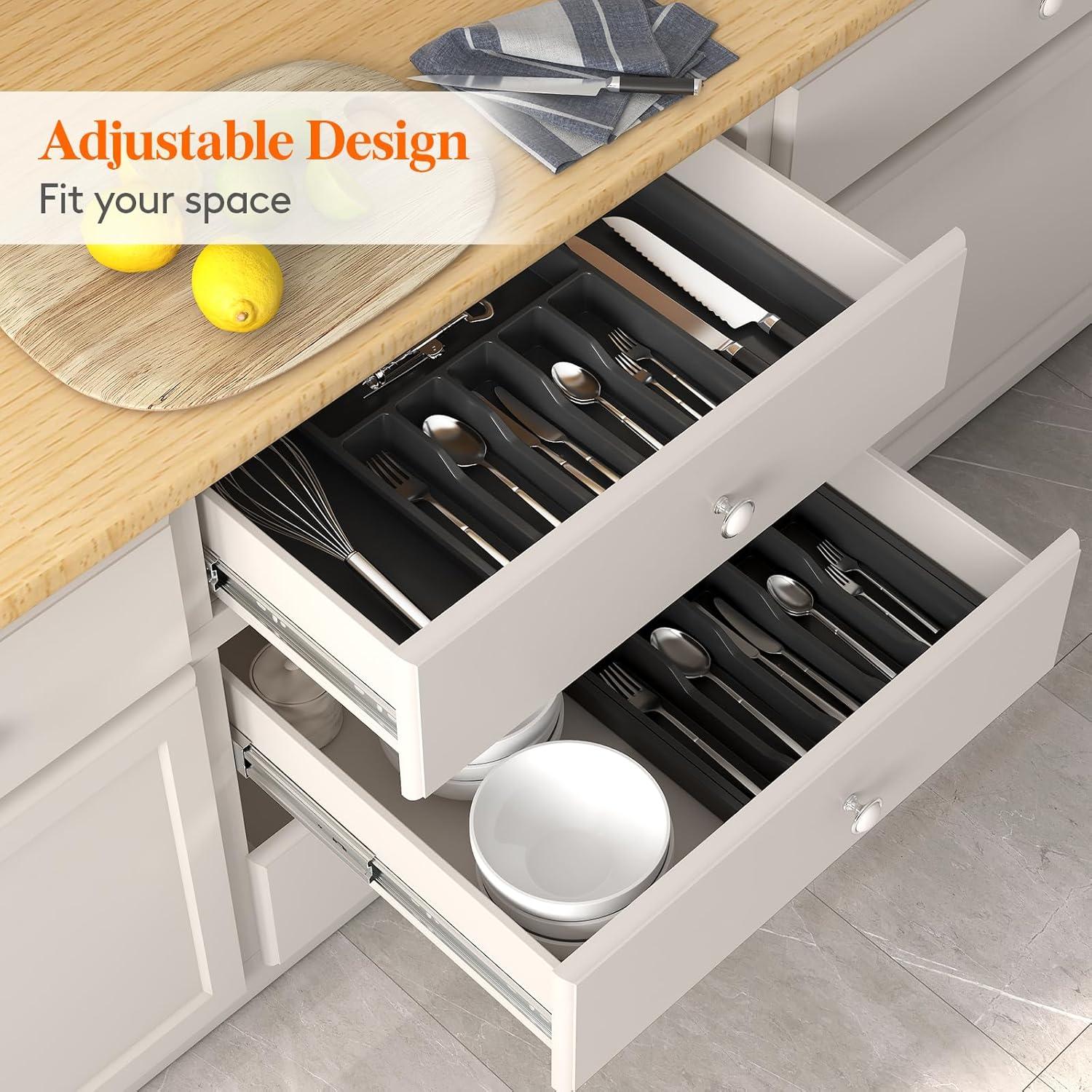 Lifewit Silverware Drawer Organizer and Utensil Organizer Set, Expandable Cooking Cutlery Tray for Kitchen, Adjustable Plastic Flatware Holder Storage Divider for Spoons Forks Knives, Large, Black(Black)