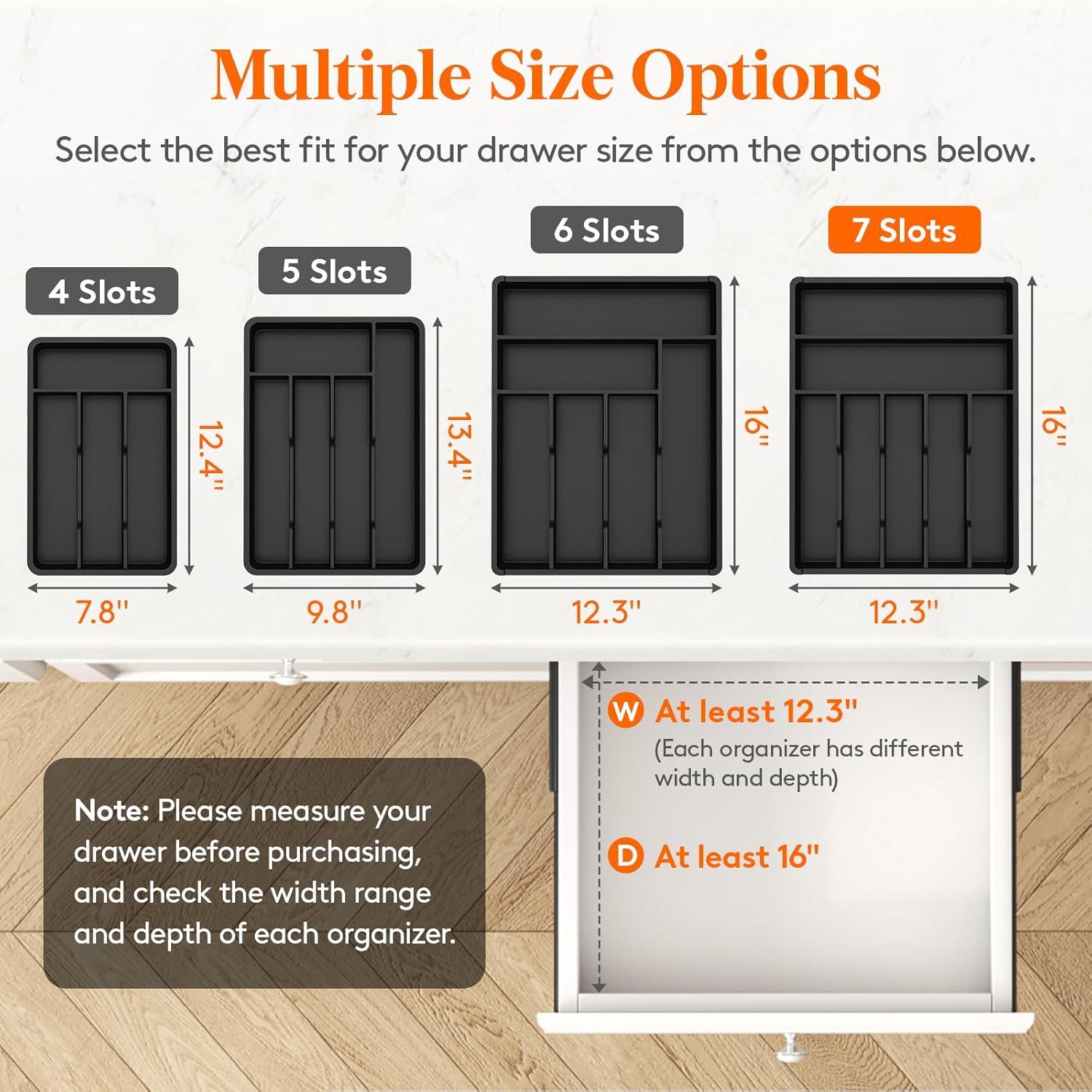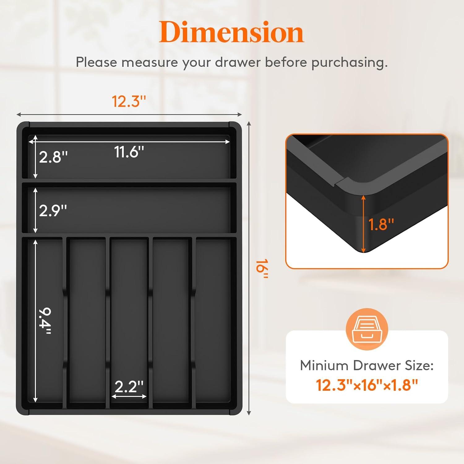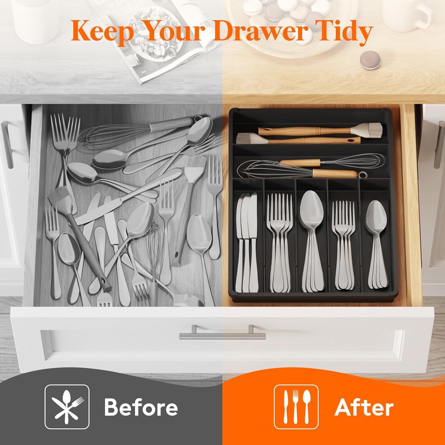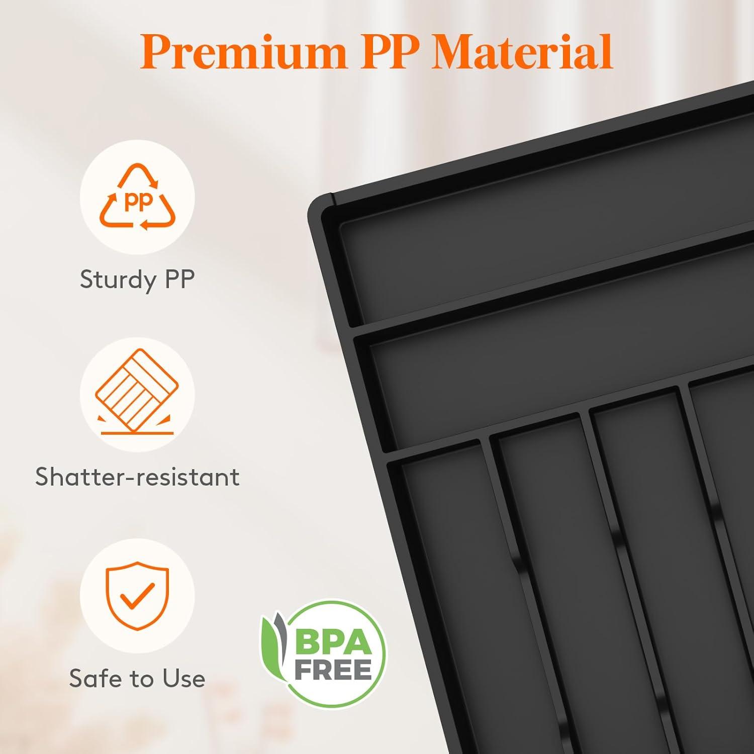 Robust and Safe: This kitchen drawer organizer is crafted from premium PP material, BPA-free and built to last. It ensures your silverware is stored in a healthy, safe environment for worry-free use