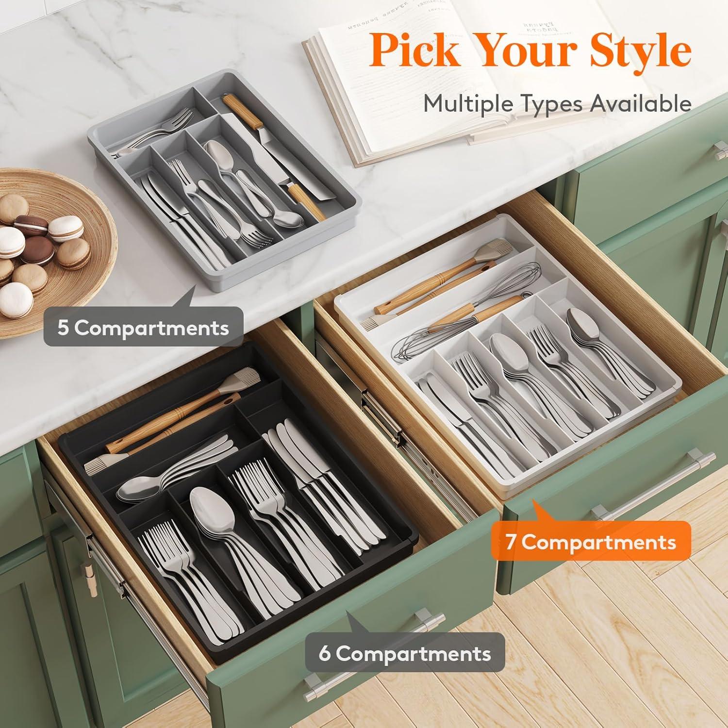 Sort Your Silverware: The silverware tray comes with 5 compartments, creating more space in drawers for spoons, cutlery, and flatware. Streamline your cooking with a no-install organizer that keeps cutlery at your fingertips