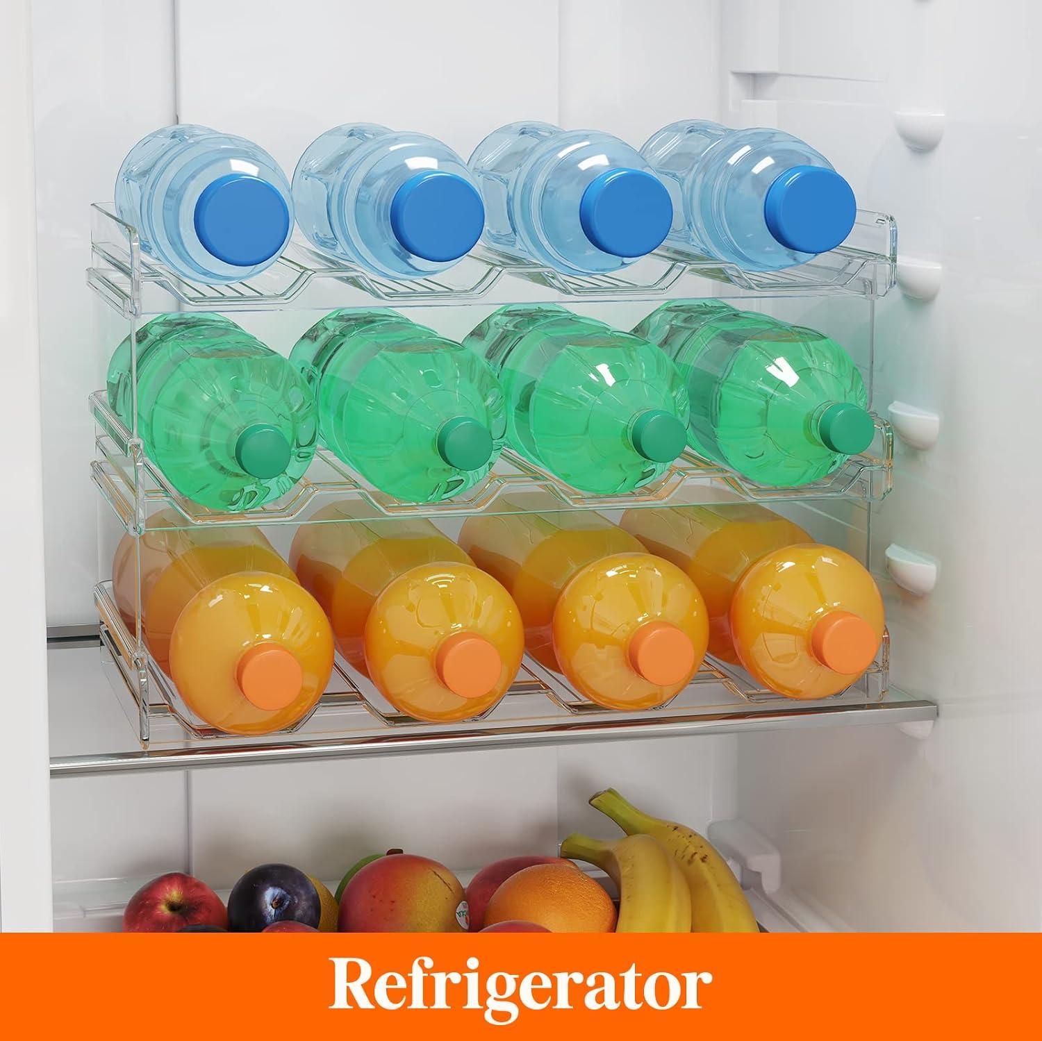 Lifewit Stackable Water Bottle Organizer for Cabinet, Plastic Bottle Holder Fits Bottles & Tumblers up to 3.8″ Diameter, Pantry, Countertop & Fridge, 2 Tier Holds 8 Bottles(24-bottle(3-tier))