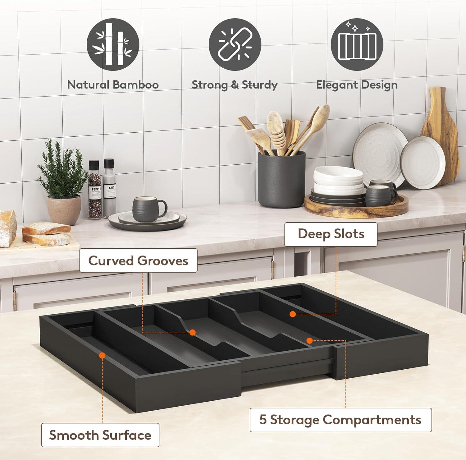 Easy to Access: The silverware organizer features carefully designed grooves making it easy to locate your favorite knife or spoon without rummaging through a messy drawer. This kitchen drawer organizer ensures you can quickly find what you need
