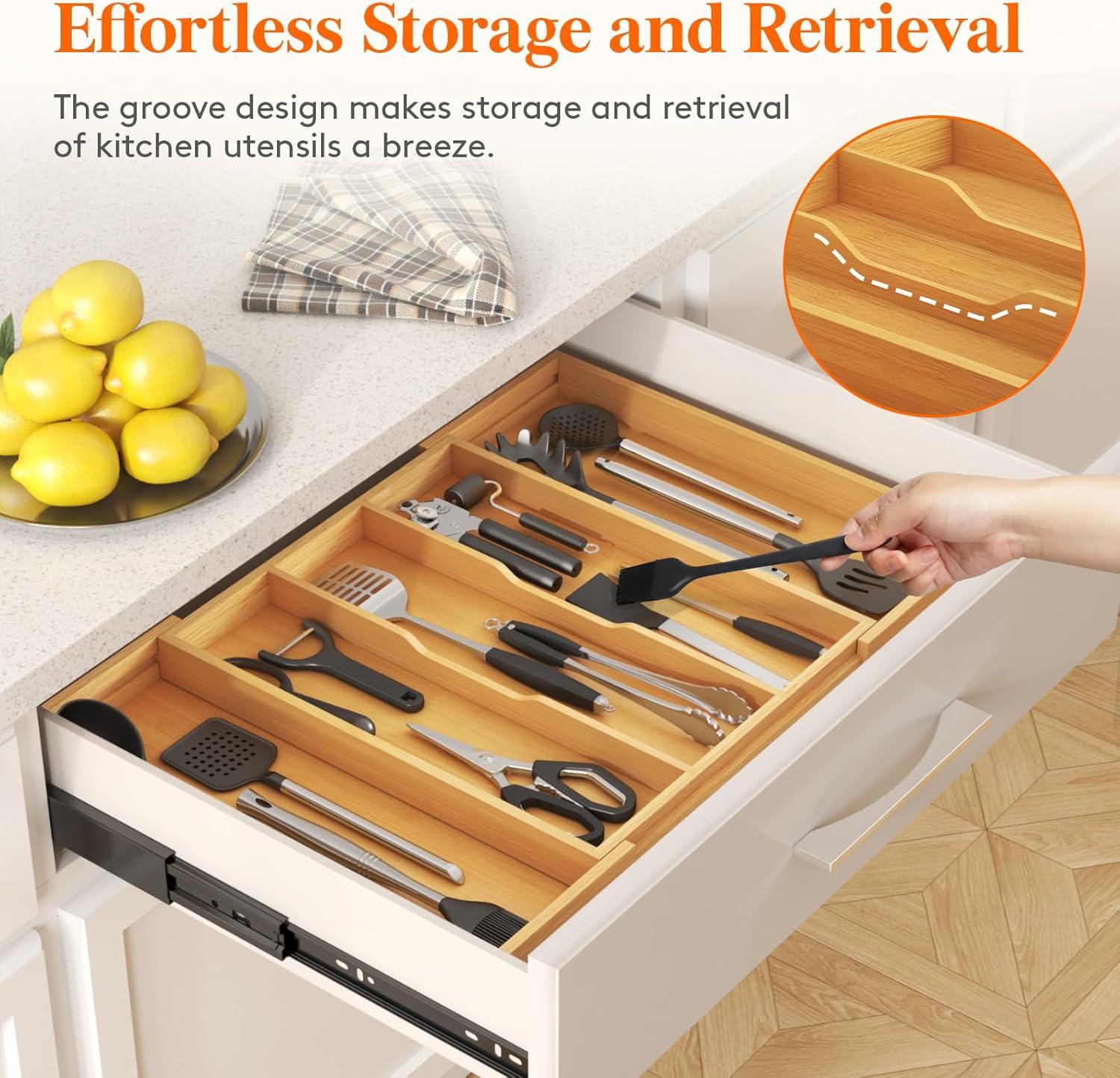 Easy to Access: The silverware organizer features carefully designed grooves making it easy to locate your favorite knife or spoon without rummaging through a messy drawer. This kitchen drawer organizer ensures you can quickly find what you need