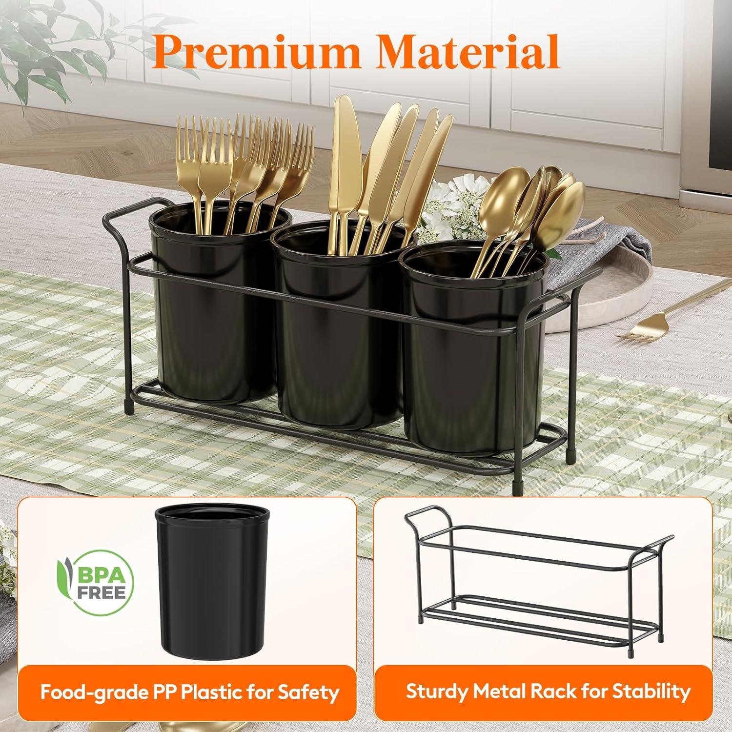 • Lifewit Utensil Drawer Organizer, Expandable Cooking Silverware Tray for Kitchen Drawer, Adjustable Cutlery Flatware Holder, Plastic Spatula Tools and Gadgets Storage Divider, 3 Compartments, Black(Black)