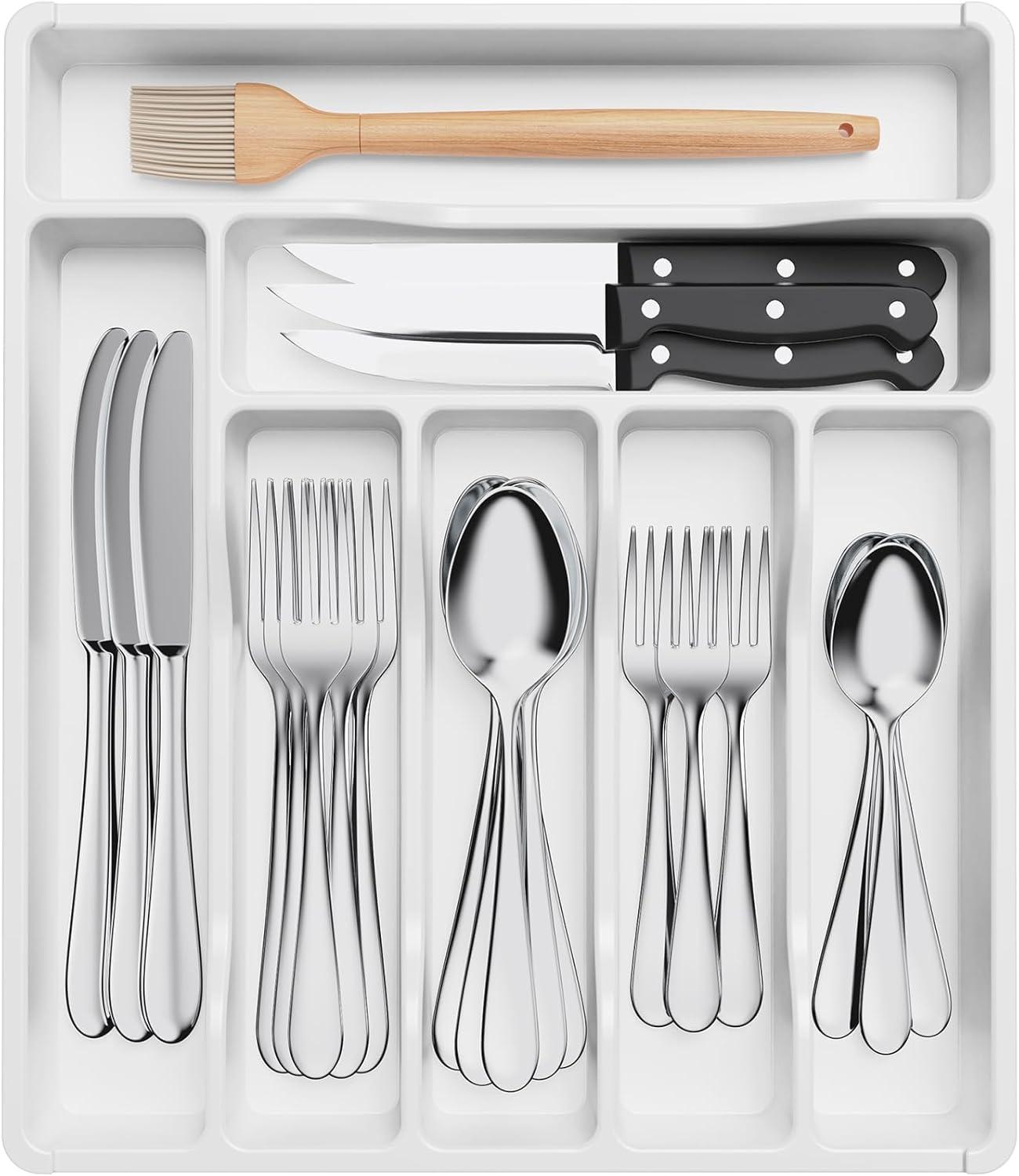 • Lifewit Utensil Drawer Organizer, Expendable Cooking Silverware Tray for Kitchen Drawer, Bamboo Adjustable Cutlery Flatware Holder, Spatula Tools and Gadgets Storage Divider, 3 Compartments, Natural(White)