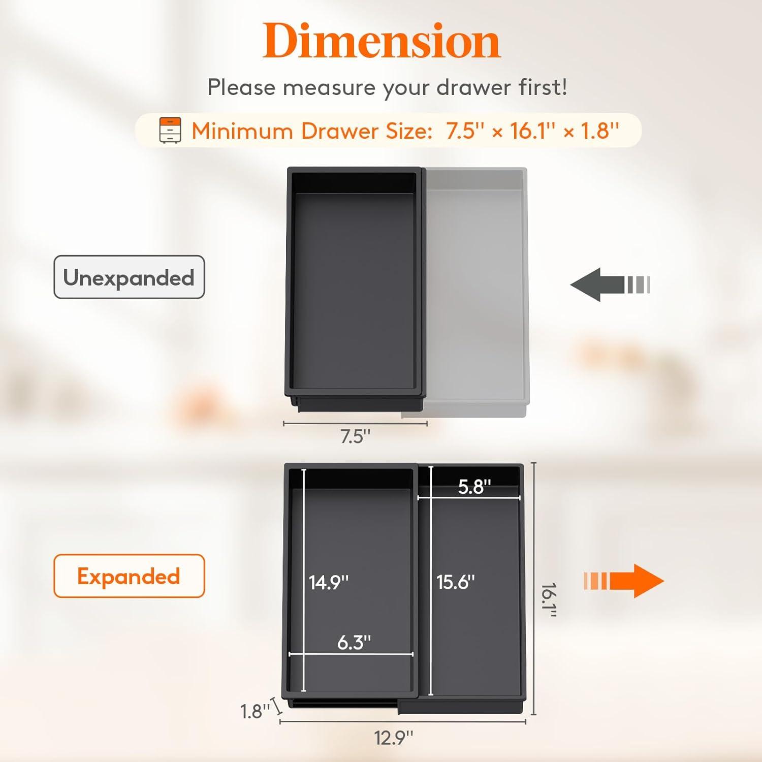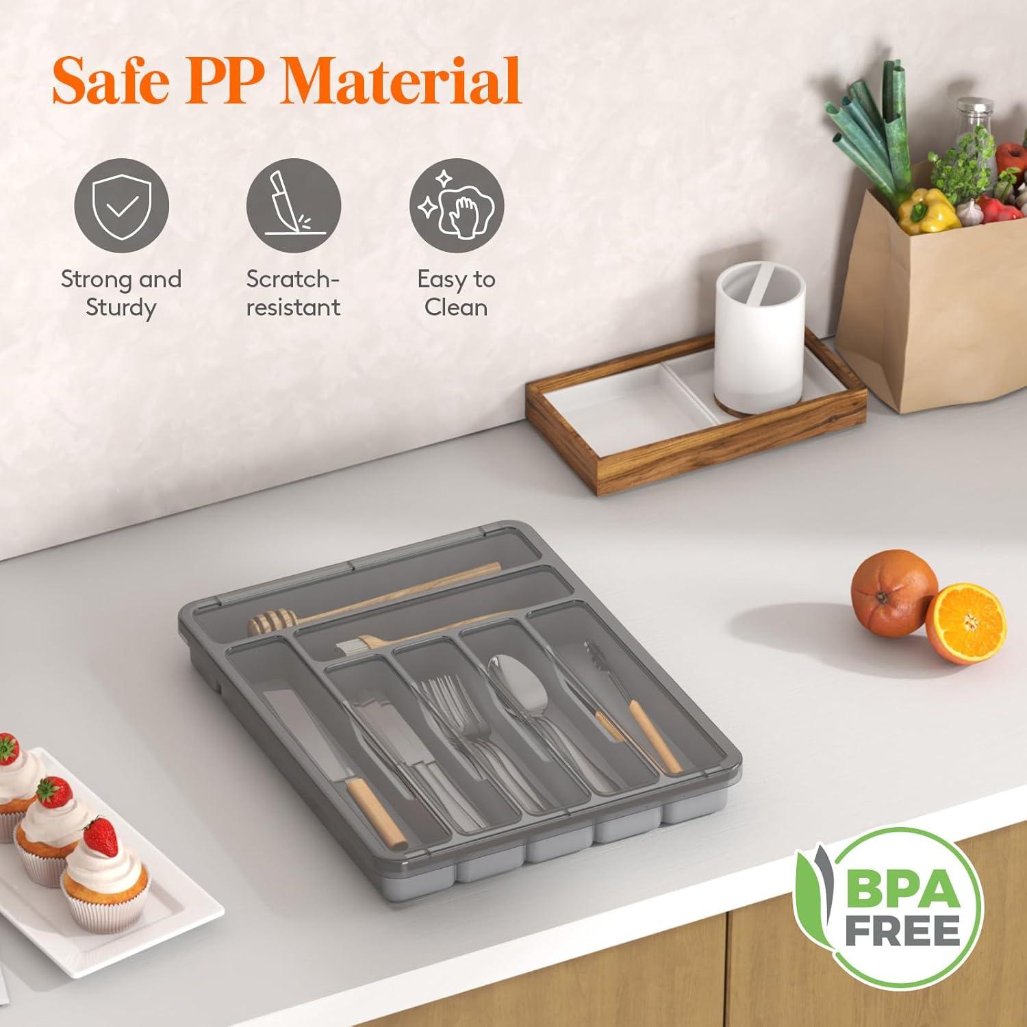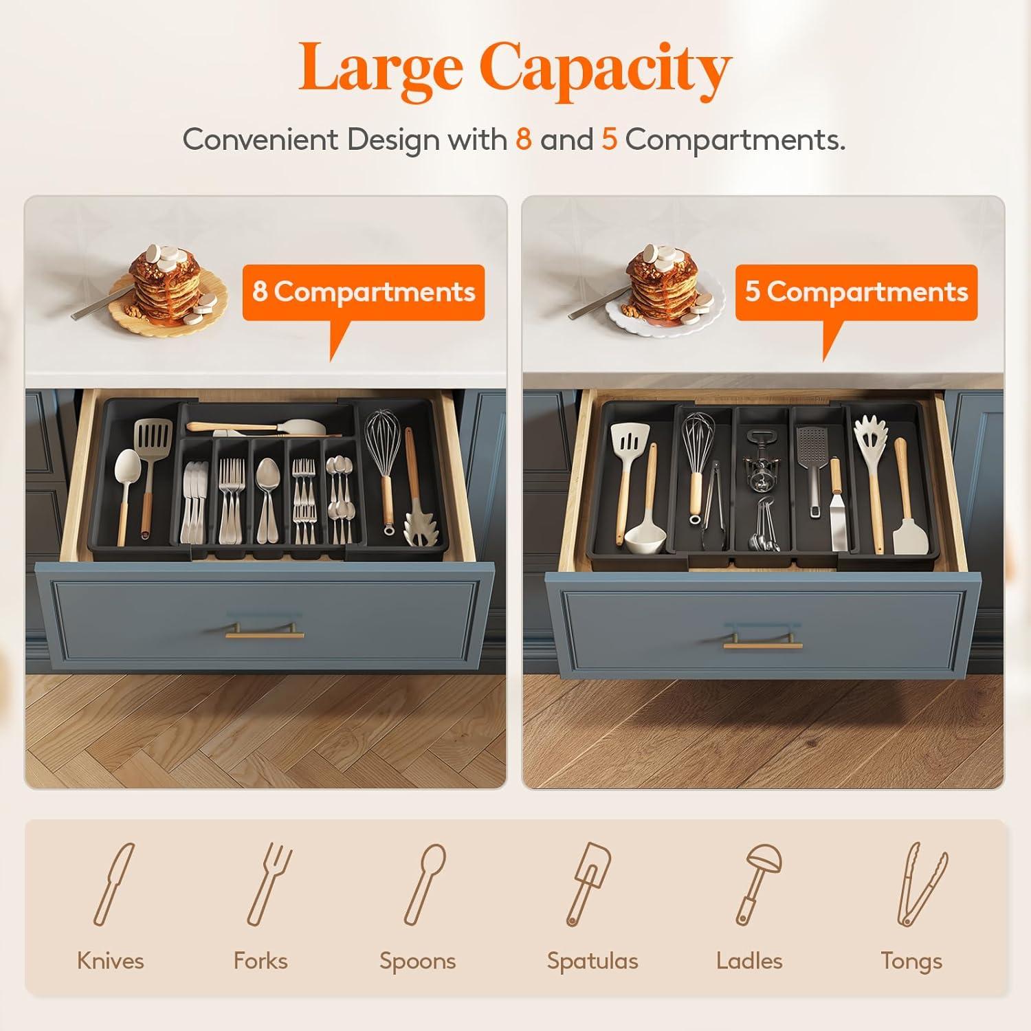 • Lifewit Utensil Drawer Organizer, Expandable Cooking Silverware Tray for Kitchen Drawer, Adjustable Cutlery Flatware Holder, Plastic Spatula Tools and Gadgets Storage Divider, 3 Compartments, Black(Gray)