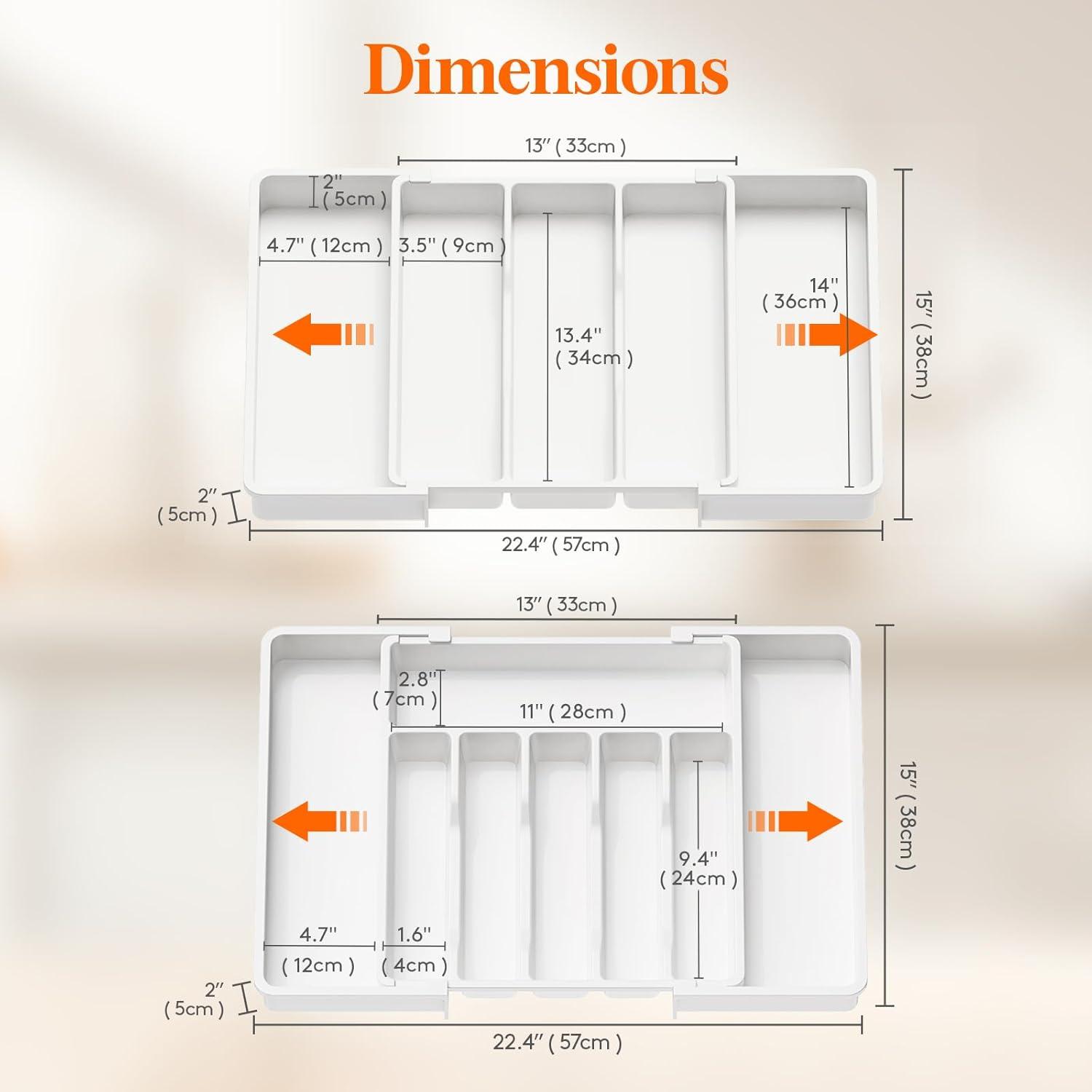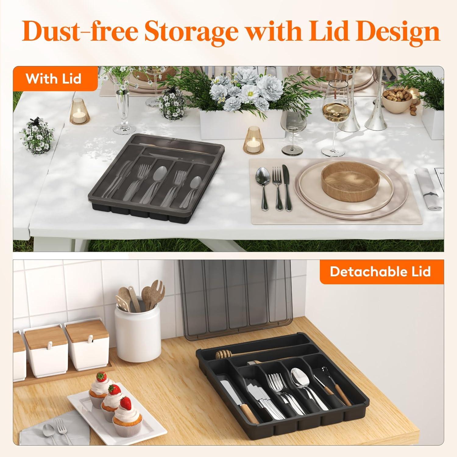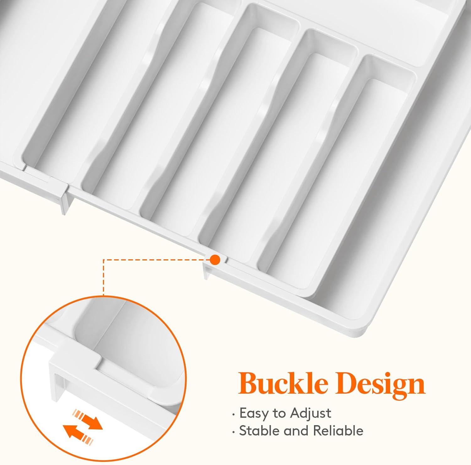 • Lifewit Utensil Drawer Organizer, Expandable Cooking Silverware Tray for Kitchen Drawer, Adjustable Cutlery Flatware Holder, Plastic Spatula Tools and Gadgets Storage Divider, 3 Compartments, Black(Gray)