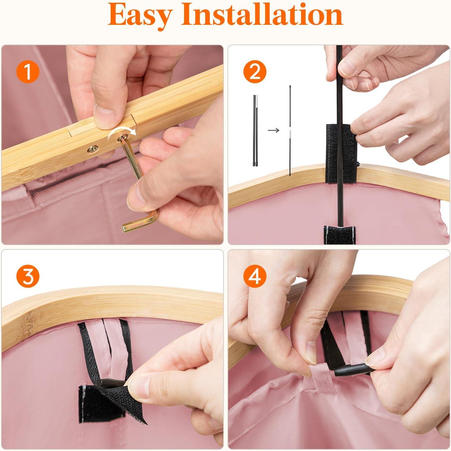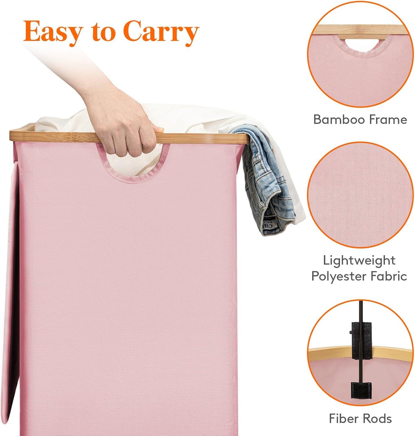 • Lifewit 100L Laundry Basket with Lid, Clothes Hampers for Laundry with Bamboo Handles and A Removable Bag, Large Foldable Laundry Hamper for Bedroom, Bathroom, Dorm, Laundry Room, Beige(Pink)