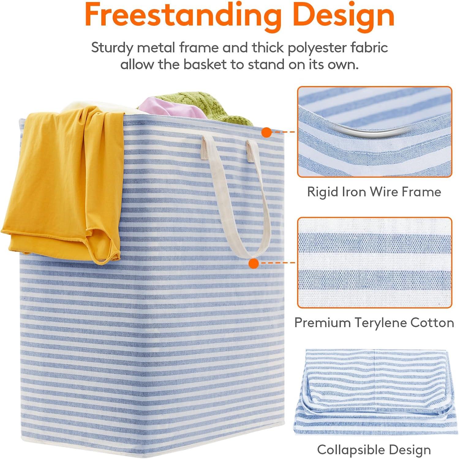 • Lifewit 2 Pack Laundry Hamper Large Collapsible Laundry Baskets, Freestanding Waterproof Clothes Hamper with Easy Carry Handles in Laundry Room Bedroom Bathroom College Dorm for Adults, Grey, 2 x 80L(Blue)