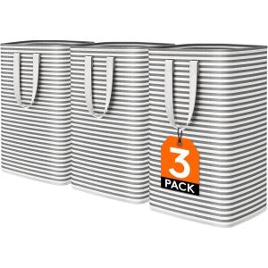 • Lifewit 2 Pack Laundry Hamper Large Collapsible Laundry Baskets, Freestanding Waterproof Clothes Hamper with Easy Carry Handles in Laundry Room Bedroom Bathroom College Dorm for Adults, Grey, 2 x 80L(Grey)