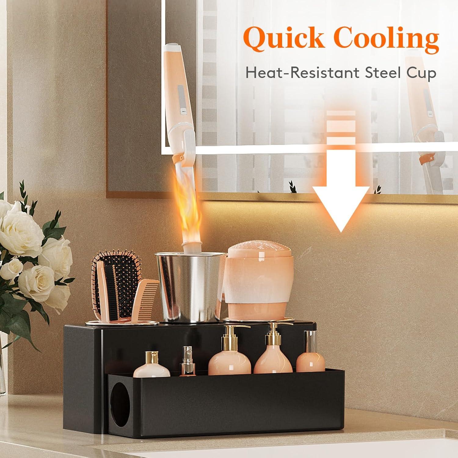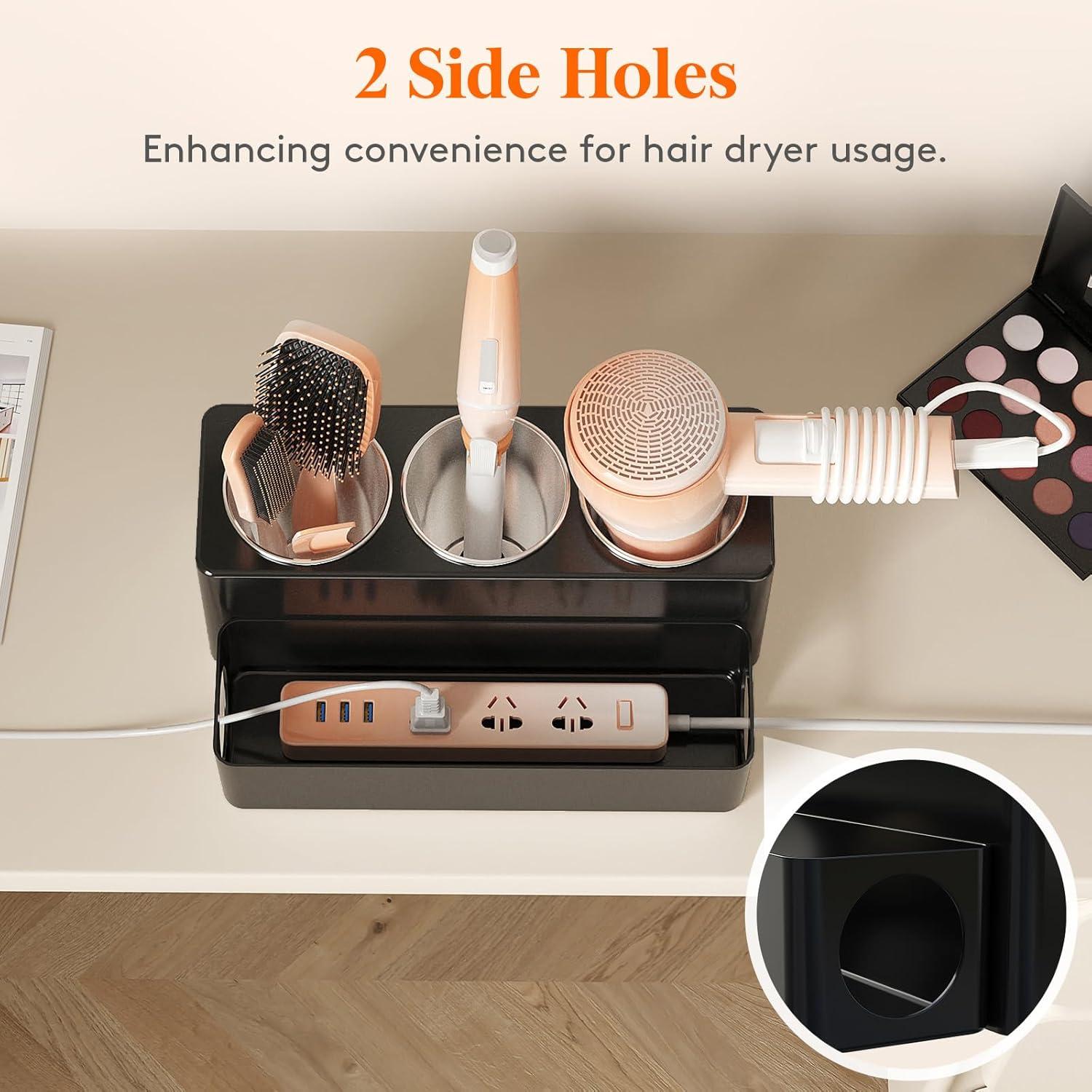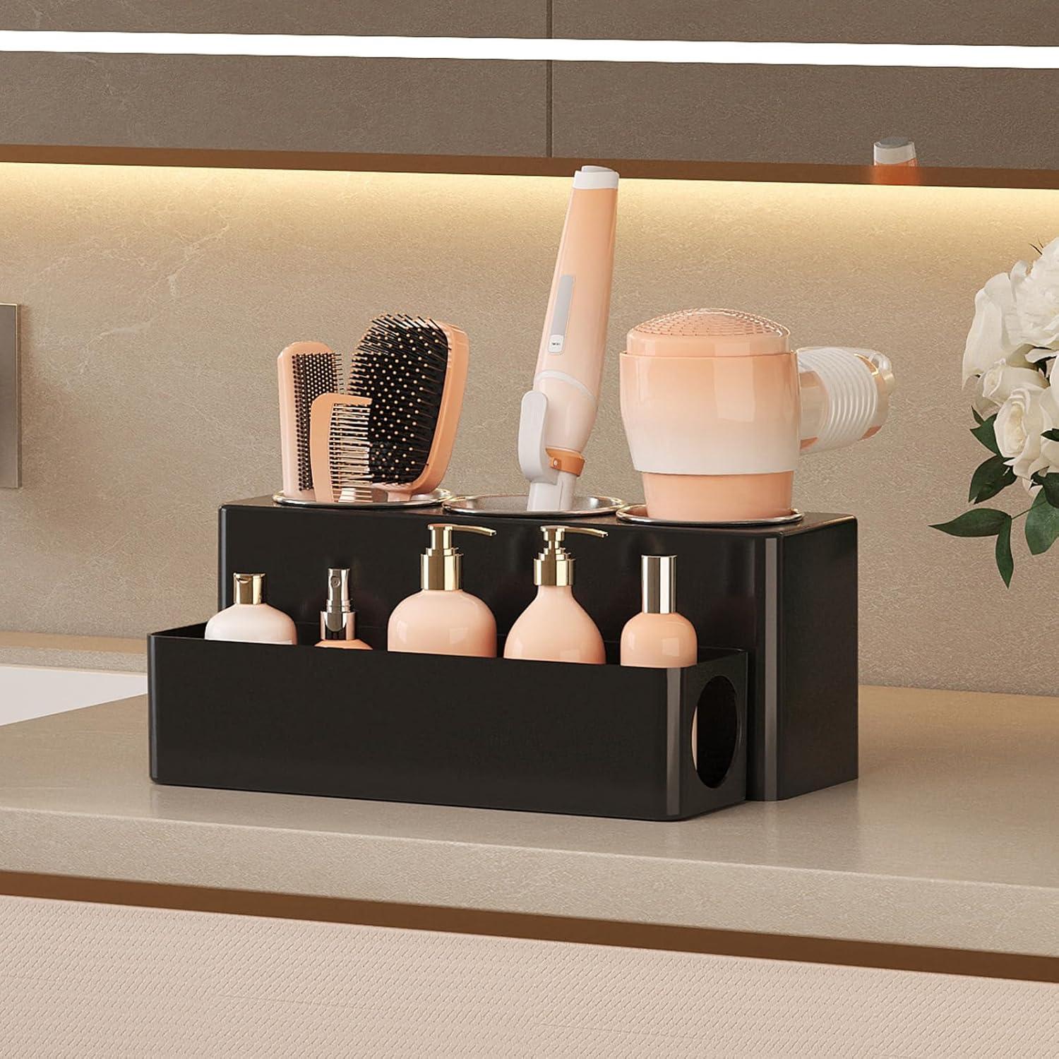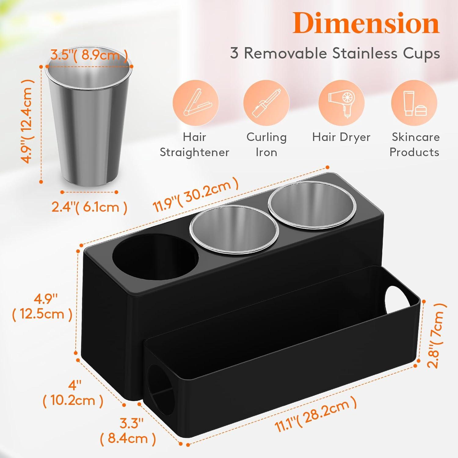 • Lifewit Hair Tool Organizer, Removable Hair Dryer Holder Countertop, Acrylic Hot Tools Organizer with 3 Stainless Cups for Curling Iron, Straightener, Hairbrush, Makeup Accessories in Bathroom, White(Black)